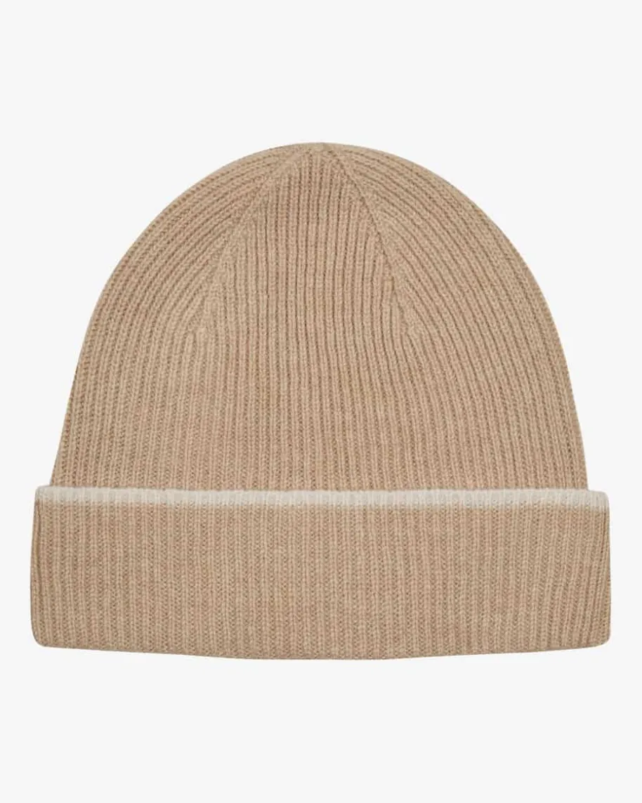 Cashmere-Mütze für Herren von Eleventy in Camel und Creme. Das Modell begeistertdank Rippstrick-Qualität und der Verwendung von edler Cashmere-Wolle. Daszeitlose Erscheinungsbild macht die Mütze zum perfekten Accessoire für jedeGelegenheit, während der kontrastierende Abschluss das Dessin charakteristischabrundet.