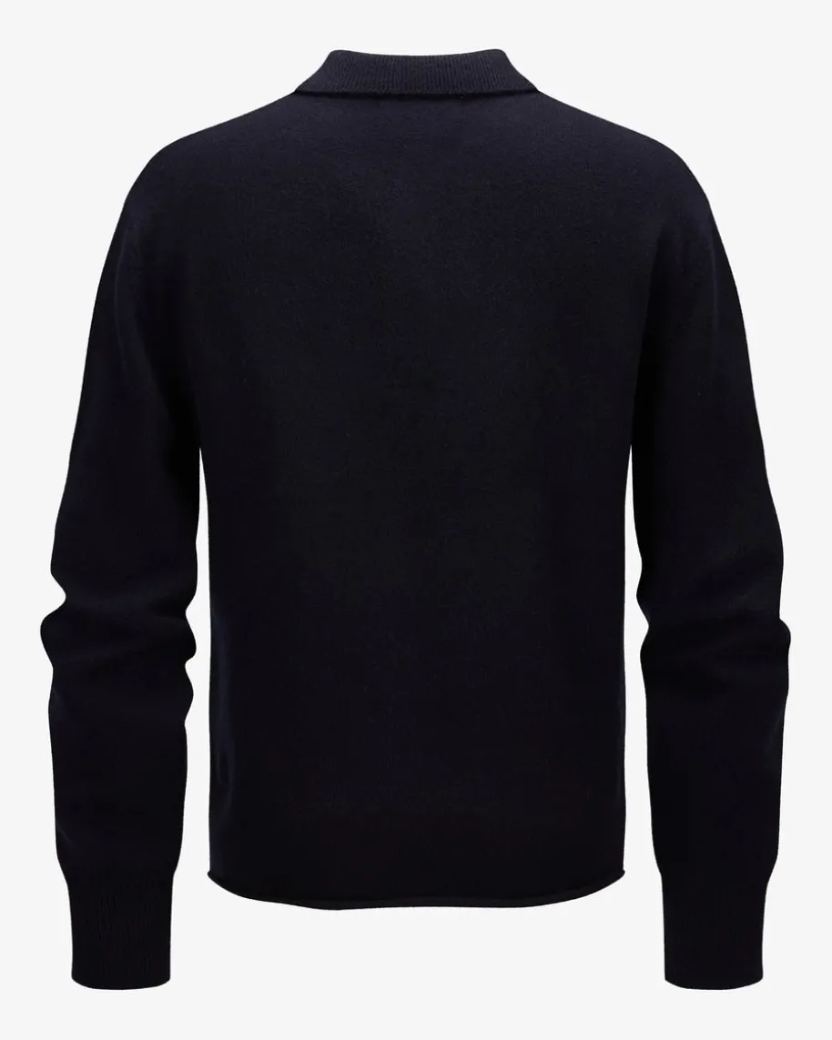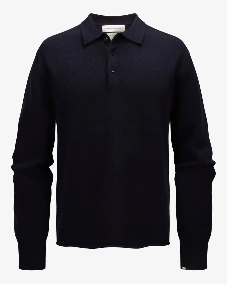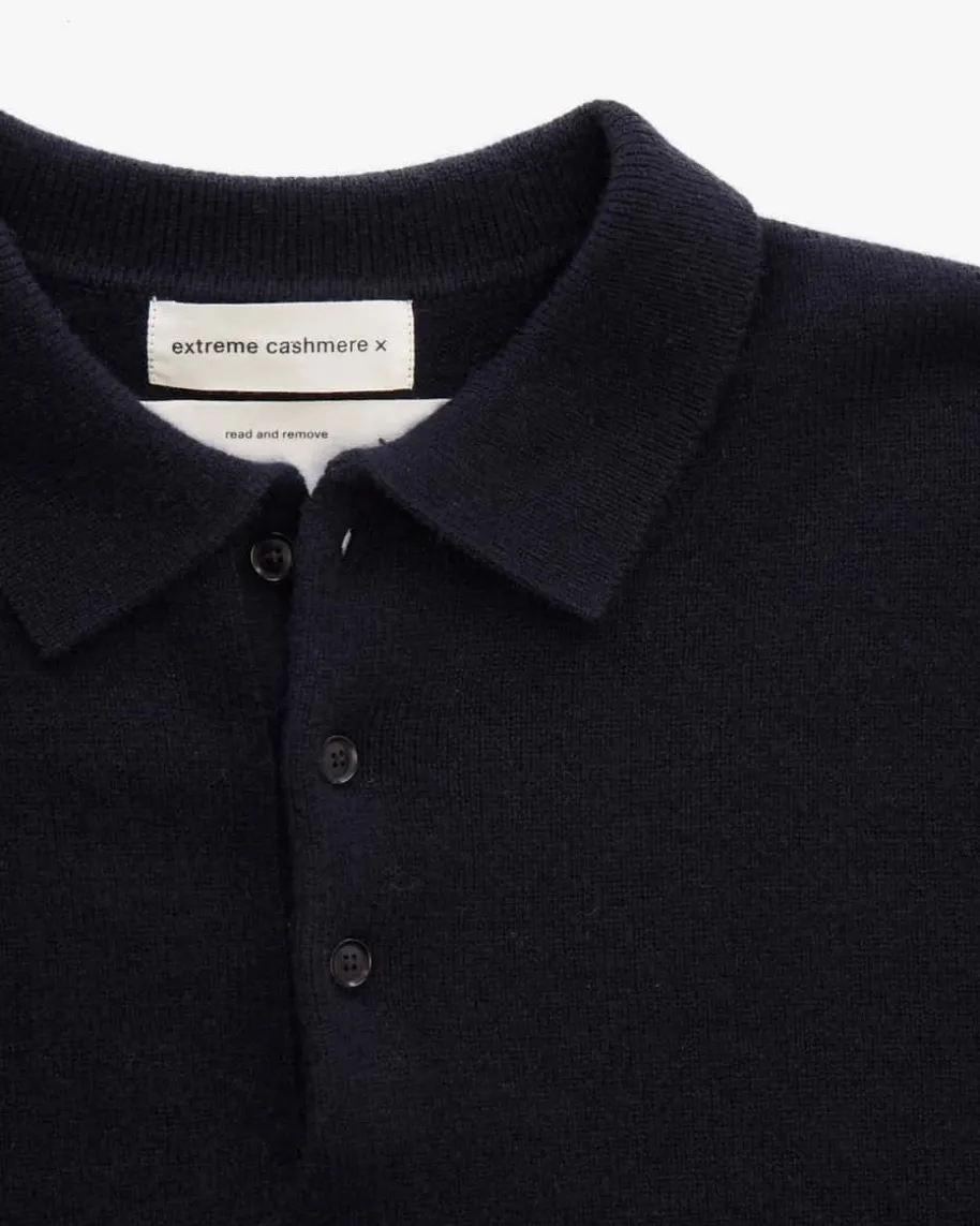 Cashmere-Pullover für Herren von Extreme Cashmere in Navy. Das Cashmere-Labelist für eine geschlechtsneutrale Mode mit Einheitsgrößen bekannt und eignet sichfür jeden Körper. Auch dieses Modell mit Polokragen zeichnet sich dankhochwertigem Cashmere-Mix mit besonders angenehmen Tragemomenten aus. Zugleichrundet die dezente Logo-Stickerei an den Ärmelenden das Gesamtbild labeltypischab.