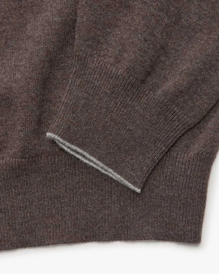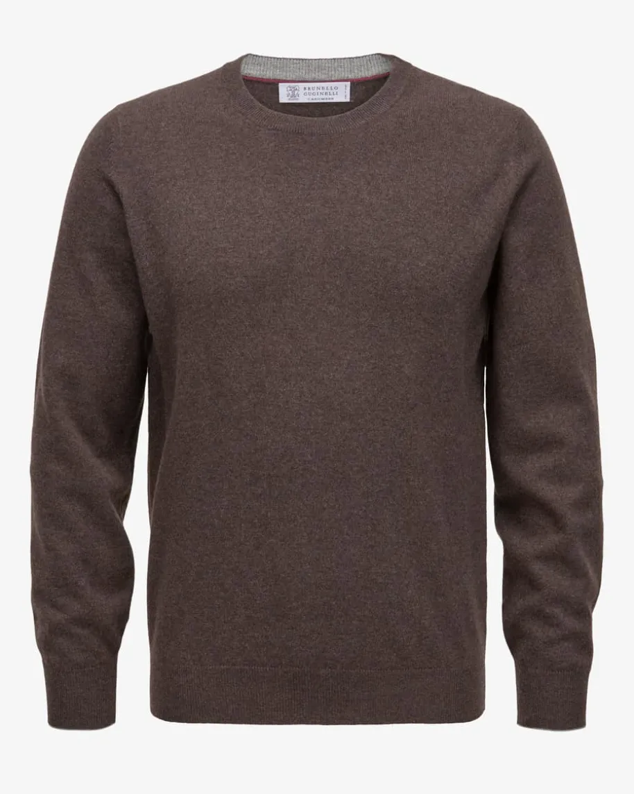 Cashmere-Pullover für Herren von Brunello Cucinelli in Braun. Mit gerademSchnitt, besonders weichem Griff sowie feiner Strick-Qualität werden klassischeAkzente gesetzt, während Rippstrick-Details und kontrastierende Paspelierungenden edlen Pullover zum angenehmen Basic für stilsichere Looks machen.