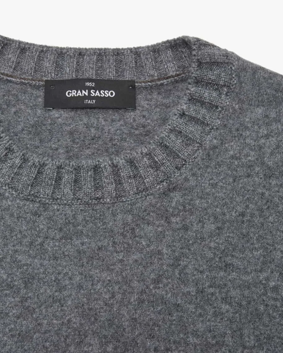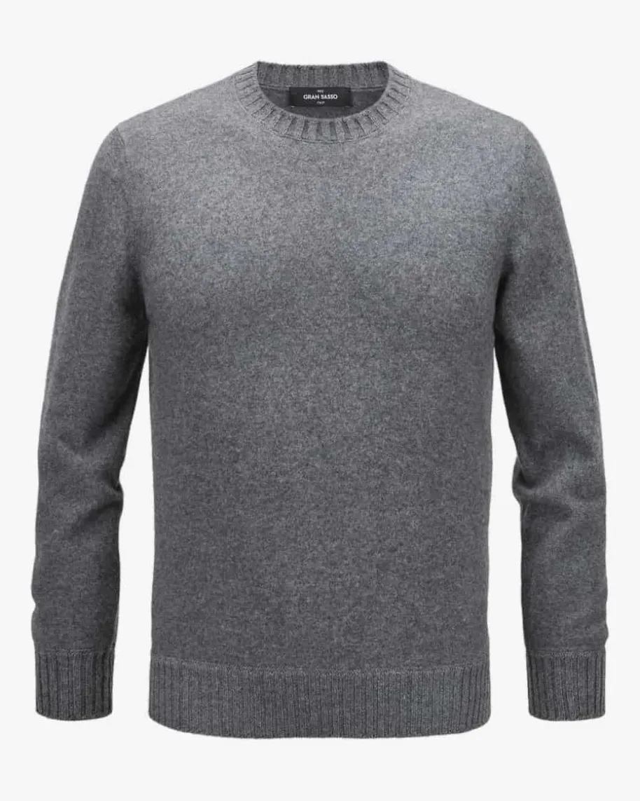 Cashmere-Pullover für Herren von Gran Sasso in Grau. Das feine Strickmusterals auch klassische Rippstrick-Elemente machen das Modell zu einem zeitlosenPiece, während die Verwendung von hochwertiger Cashmere-Wolle einen besondersweichen Griff aufweist.