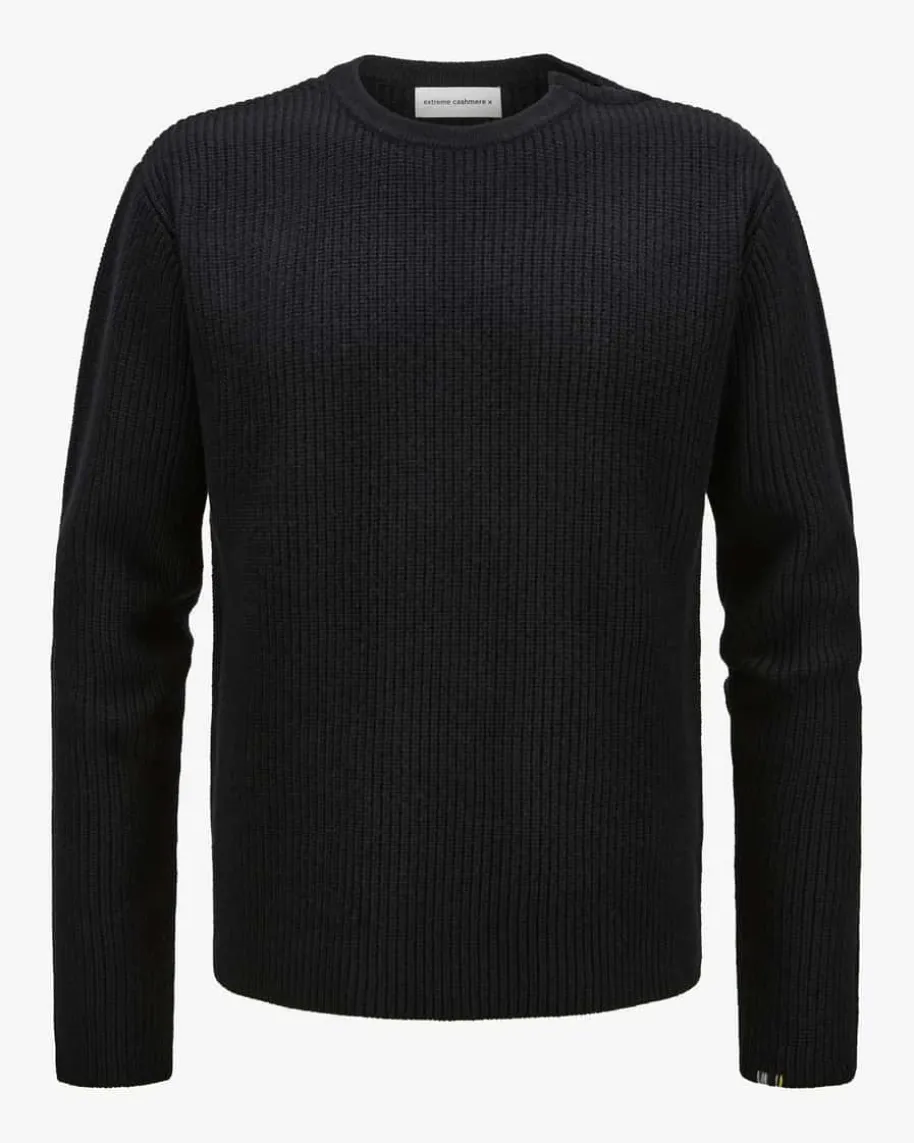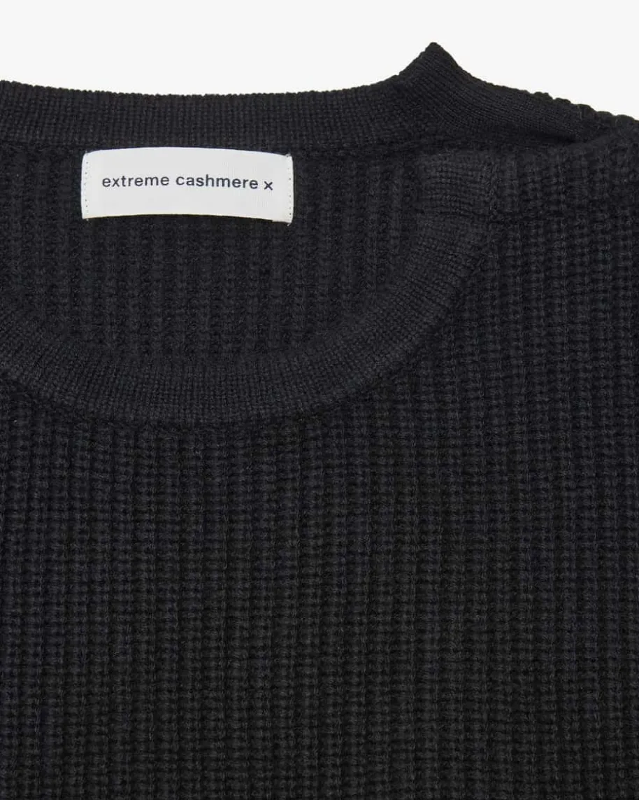 Cashmere-Pullover für Herren von Extreme Cashmere in Schwarz. Das Cashmere-Labelist für eine geschlechtsneutrale Mode mit Einheitsgrößen bekannt und eignet sichfür jeden Körper. Auch dieses Modell zeichnet sich dank hochwertige Cashmere-Qualität in Perlfang-Strickmuster mit besonders angenehmen Tragemomenten aus.Zugleich rundet die dezente Logo-Stickerei an den Ärmelenden das zeitloseGesamtbild labeltypisch ab.