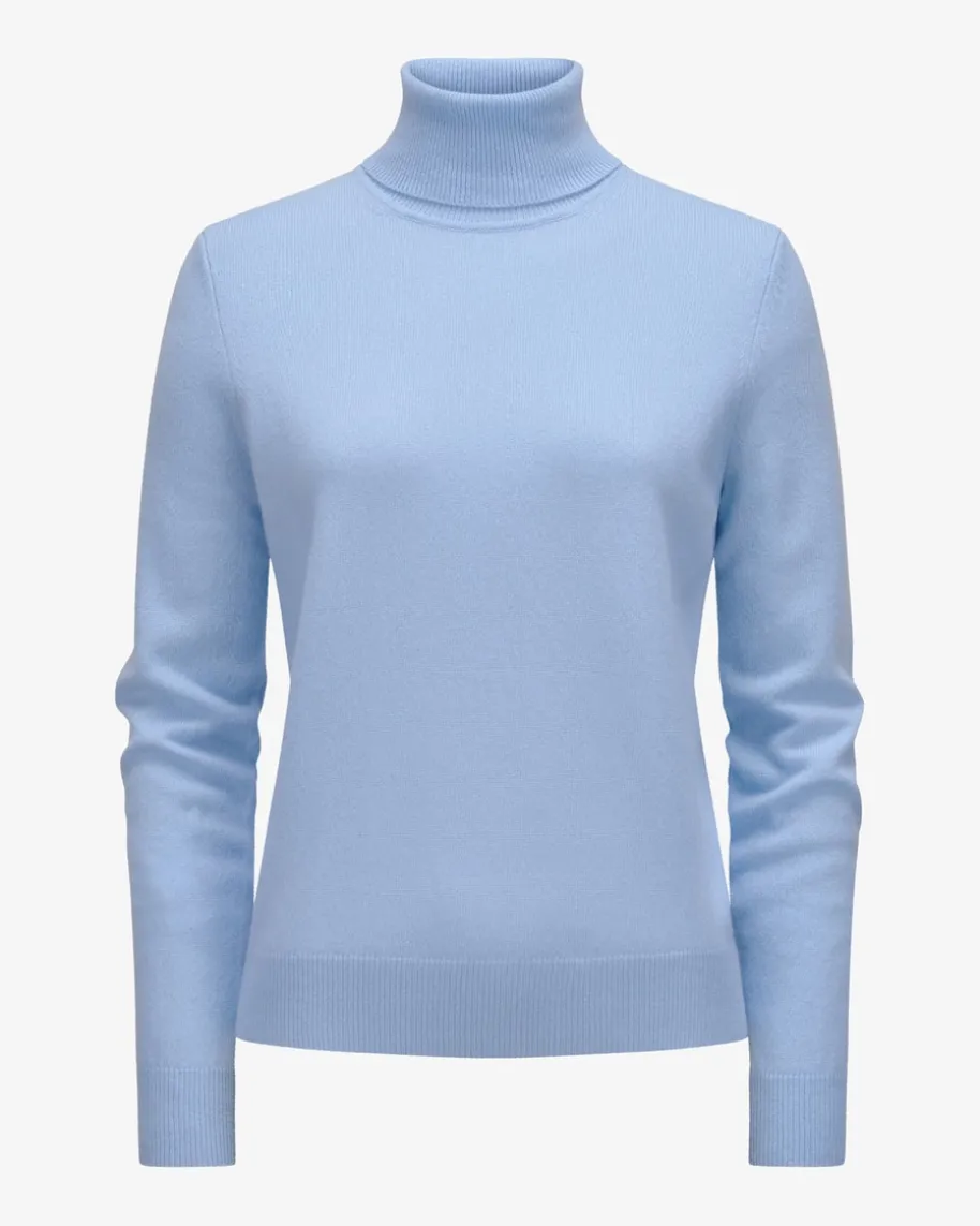 Cashmere-Rollkragenpullover für Damen von Luisa Di Carpi in Hellblau. Währenddie Cashmere-Qualität eine angenehme Haptik verspricht, sorgt das cleane Strick-Design für einen zeitlosen Look.
