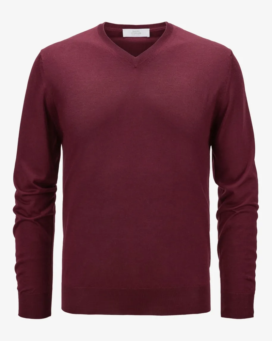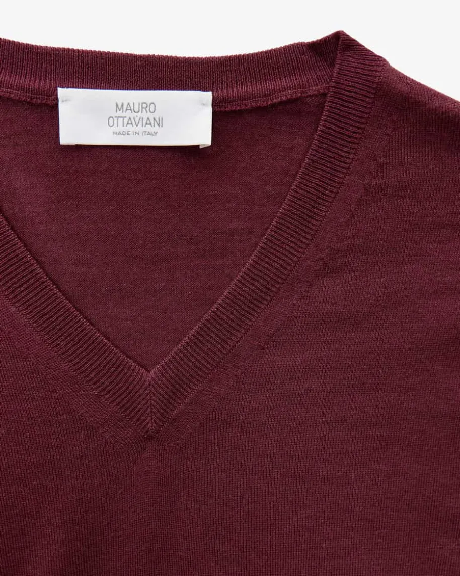 Cashmere-Seiden-Pullover für Herren von Mauro Ottaviani in Bordeaux.Leidenschaft und erstklassige Handwerkskunst, welche perfekt auf die Bedürfnissemoderner Männer angepasst ist, zeichnet das Label Ottaviani aus. Dank derVerwendung von hochwertigem Cashmere-Seiden-Mix punktet das Modell mit feiner,weicher Strick-Qualität, während das klassische Design einen zeitlosen Favoritenfür Ihre Casual-Garderobe schafft.
