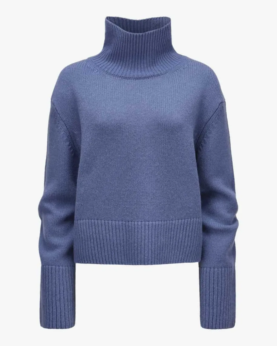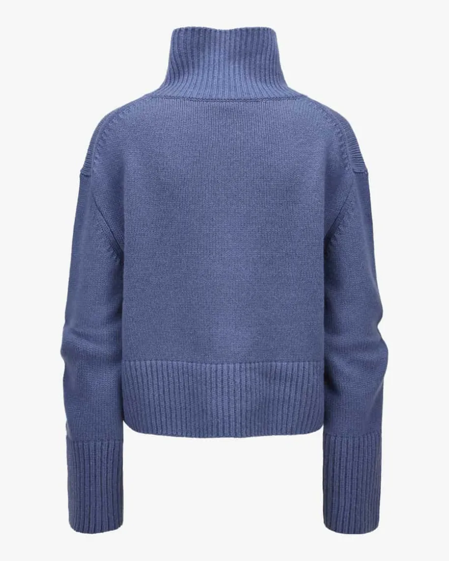 Cashmere-Stehkragenpullover für Damen von OFF & CO in Blau.Reduzierter Look mitVerantwortung – Mit dieser Philosophie entwirft das Labelnachhaltige Strick-Essentials. Dank der Verwendung von hochwertiger Cashmere-Wolle verspricht dasModell angenehmen Tragekomfort, während die weiteSchnittführung mit markantenRippstrick-Details einen legeren Herbst/-Winter-Favoritenkreiert.