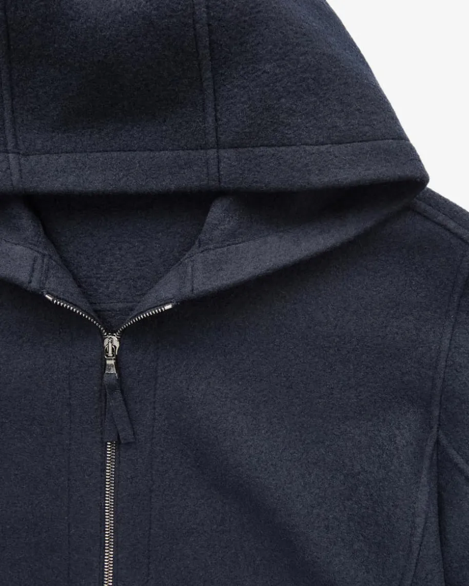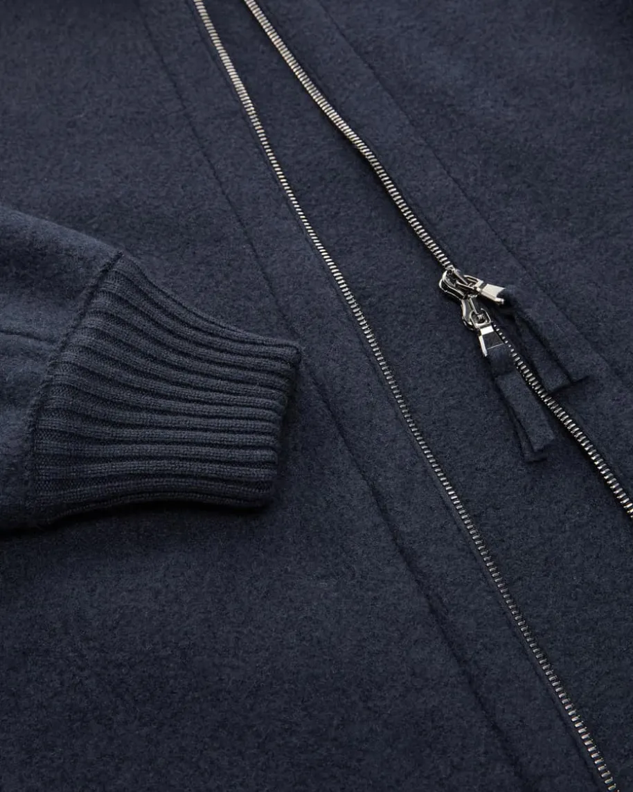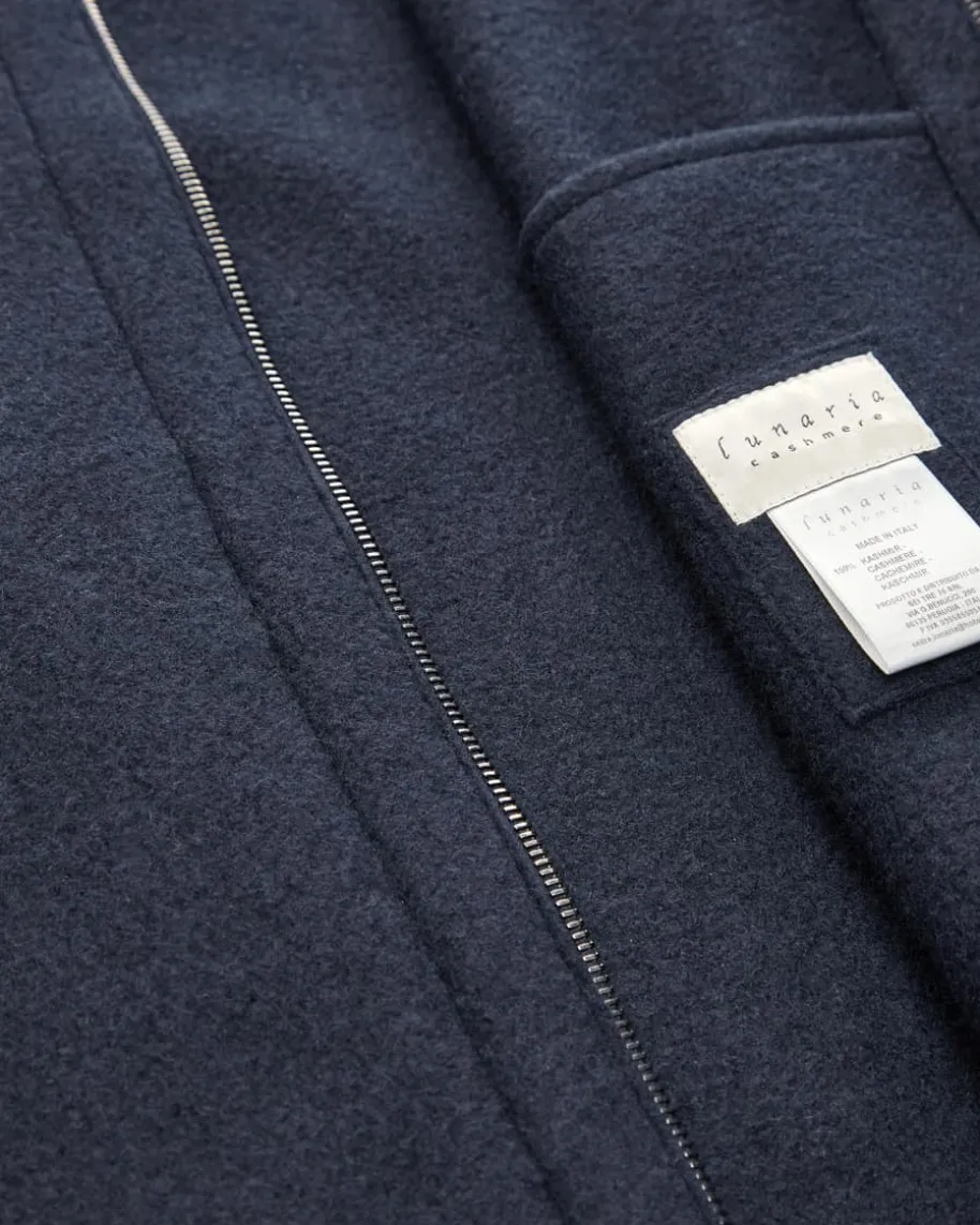 Cashmere-Strickjacke für Herren von Lunaria in Marine. Dank der Verwendung vonhochwertigem Cashmere begeistert das Modell mit weicher Qualität, während daslegere Design mit Kapuze einen zeitlosen Favoriten für Ihre Casual-Garderobeschafft.