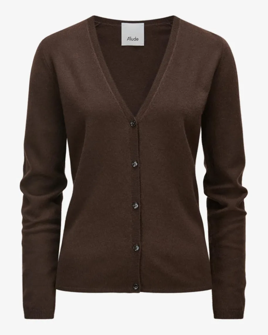 Cashmere-Strickjacke für Damen von Allude in Schoko. Das Münchner UnternehmenAllude steht für Mode, die Selbstbewusstsein und zeitlose Individualitätausstrahlt. Gefertigt aus hochwertiger Cashmere-Wolle, besticht das schlichteModell mit besonders weichem Griff und leichter Strick-Haptik, wodurch einzeitloses Essential entsteht.