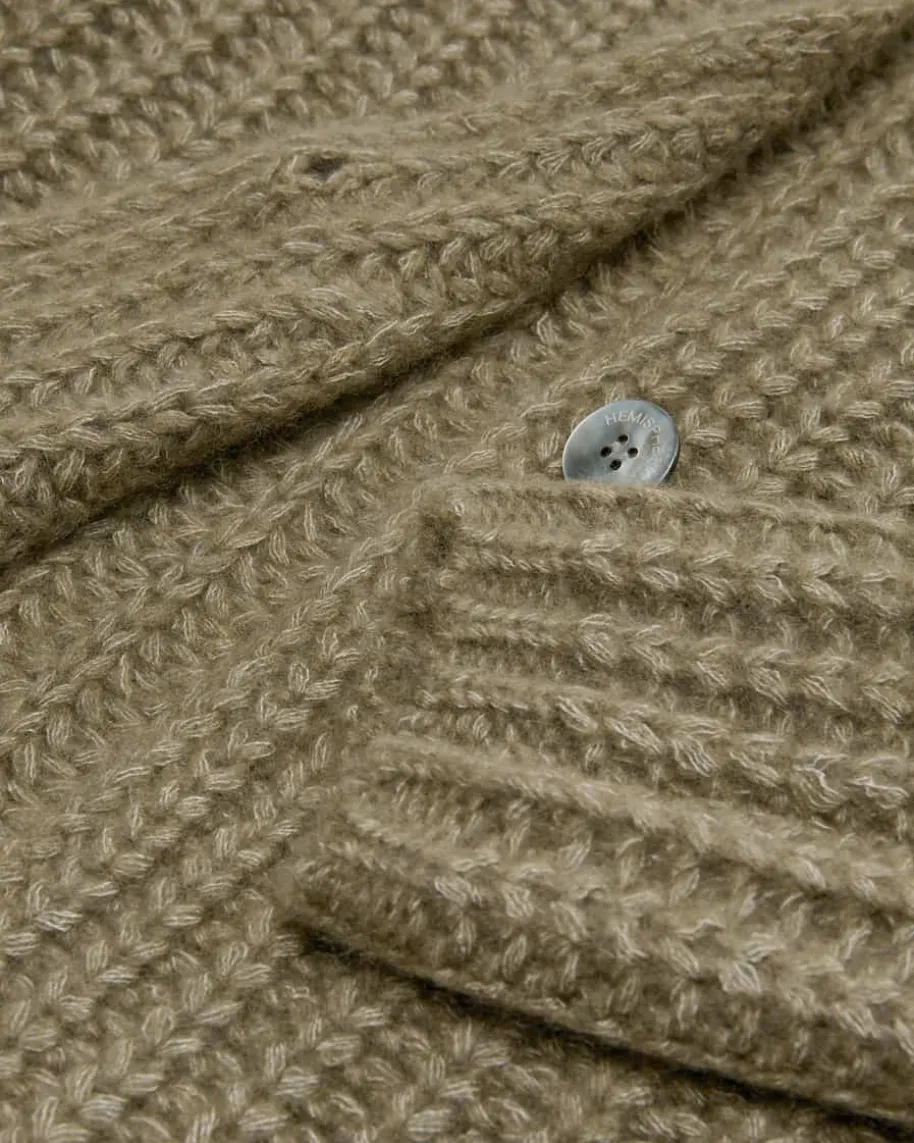Cashmere-Strickjacke für Damen von Hemisphere in Oliv. Dankhochwertigem Cashmere-Baumwoll-Mix sowie der weiten Silhouette begeistert dasModell als legererFavorit mit weicher Haptik, welcher durch das Grobstrick-Design modern vollendetwird.