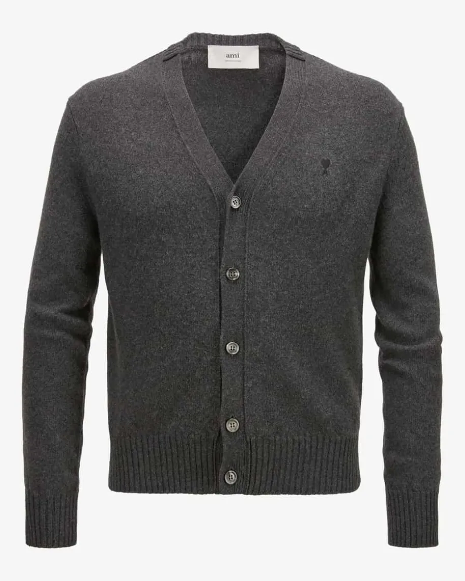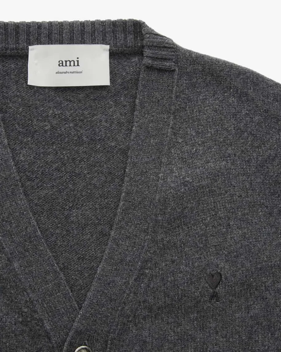 Cashmere-Strickjacke für Herren von Ami Paris in Anthrazit. Ami Paris istbenannt nach den Freunden von Alexandre Mattiussi – Mode mit persönlicher Note.Das Modell besticht dank der hochwertigen Cashmere-Qualität sowie derherzförmigen Logo-Stickerei mit haptischen wie auch optischen Highlights,während die klassische Aufmachung ein zeitloses Basic mit dem gewissen Etwaskreiert.