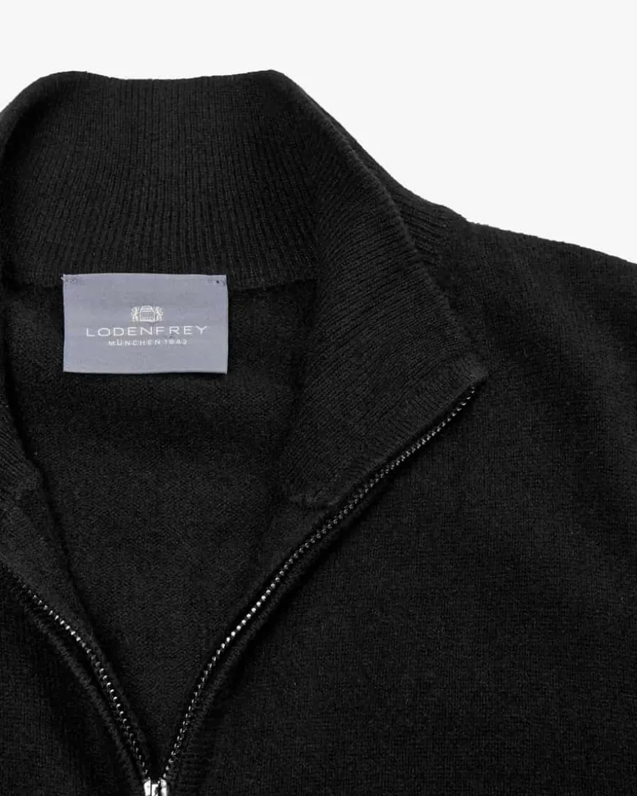 Cashmere-Strickjacke für Herren von LODENFREY in Schwarz. Dank der Verwendungvon hochwertiger Cashmere-Wolle besticht das Modell mit besonders weichem Griff,während die zeitlose Stehkragen-Aufmachung mit Zweiwege-Reißverschluss einmaskulines Strick-Essential schafft.