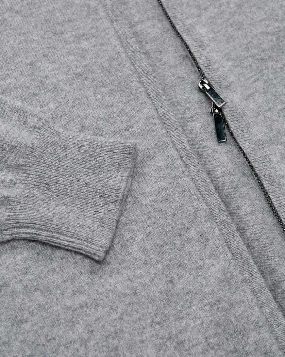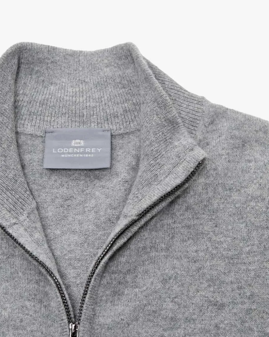 Cashmere-Strickjacke für Herren von LODENFREY in Grau. Dank der Verwendung vonhochwertiger Cashmere-Wolle besticht das Modell mit besonders weichem Griff,während die zeitlose Stehkragen-Aufmachung mit Zweiwege-Reißverschluss einmaskulines Strick-Essential schafft.
