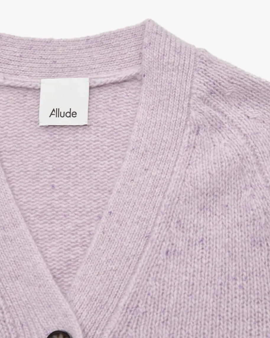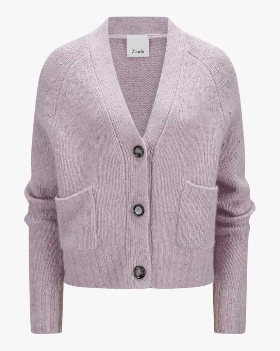 Cashmere-Strickjacke für Damen von Allude in Flieder. Das Münchner Label wurde1993 von Andrea Karg gegründet und ist bekannt für luxuriöse Strickmode ausedlem Cashmere. Auch dieses melierte Modell überzeugt mit edler Cashmere-Qualität in weicher Strick-Aufmachung, während die zeitlose Silhouette mitRippstrick-Details harmonisch ergänzt wird.