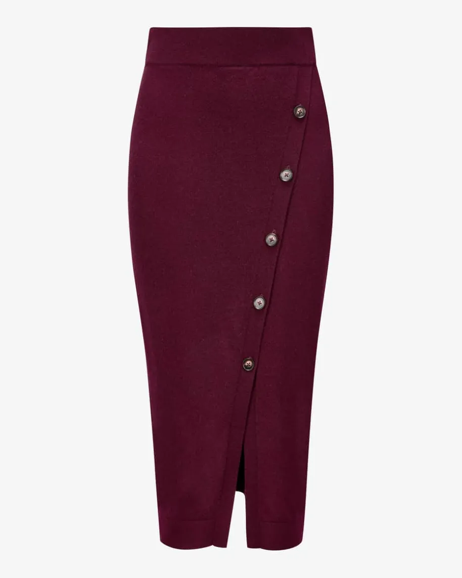 Cashmere-Strickrock von LODENFREY in Bordeaux. Cashmere-Strickrock von LODENFREYin Bordeaux. Das schmal geschnittene Modell mit Knopfleiste und dezentem Schlitzüberzeugt mit seiner eleganten Aufmachung, während die hochwertige Cashmere-Qualität angenehme Tragemomente beschert. Für einen cosy Allover-Lookkombinieren Sie den passenden Strickpullover oder Strickjacke.