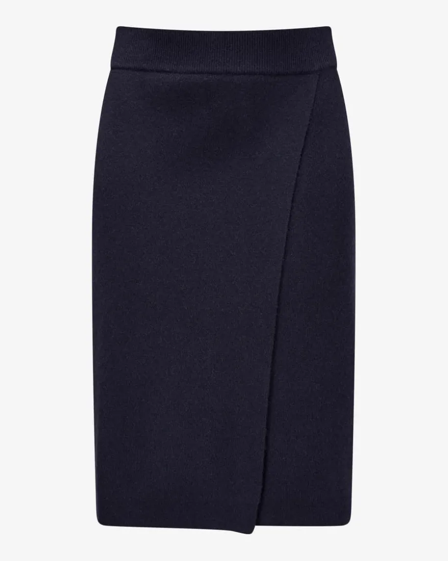 Cashmere-Strickrock für Damen von LODENFREY in Navy. Während die hochwertigeCashmere-Qualität in feiner Rippstrick-Verarbeitung angenehme Wohlfühlmomentebeschert, verleiht die Wickel-Optik dem Gesamtbild eine stilvolle Note.