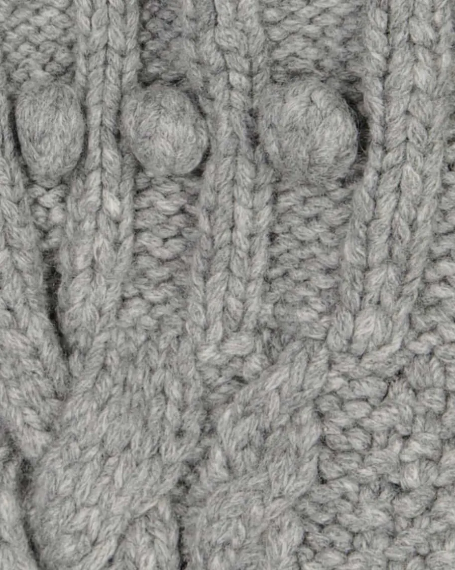 Cashmere-Strümpfe für Damen von Antonia Zander in Hellgrau. Das Modell bestichtdank des groben Strickmusters in legerer Aufmachung, während Bommel-Detailssowie Zopfstrickmuster-Partien für den letzten Schliff sorgen. Die hochwertigeCashmere-Qualität schafft angenehme Tragemomente.