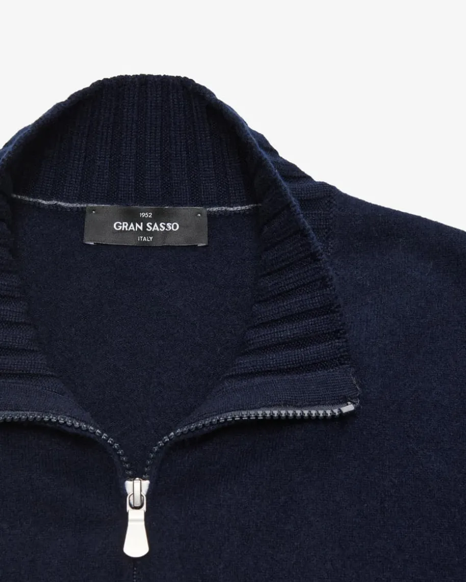 Cashmere-Troyer für Herren von Gran Sasso in Navy. Das klassische Modellavanciert dank breiten Rippstrick-Details zu einem zeitlosen Piece, während dieVerwendung von hochwertiger Cashmere einen besonders weichen Griff aufweist.