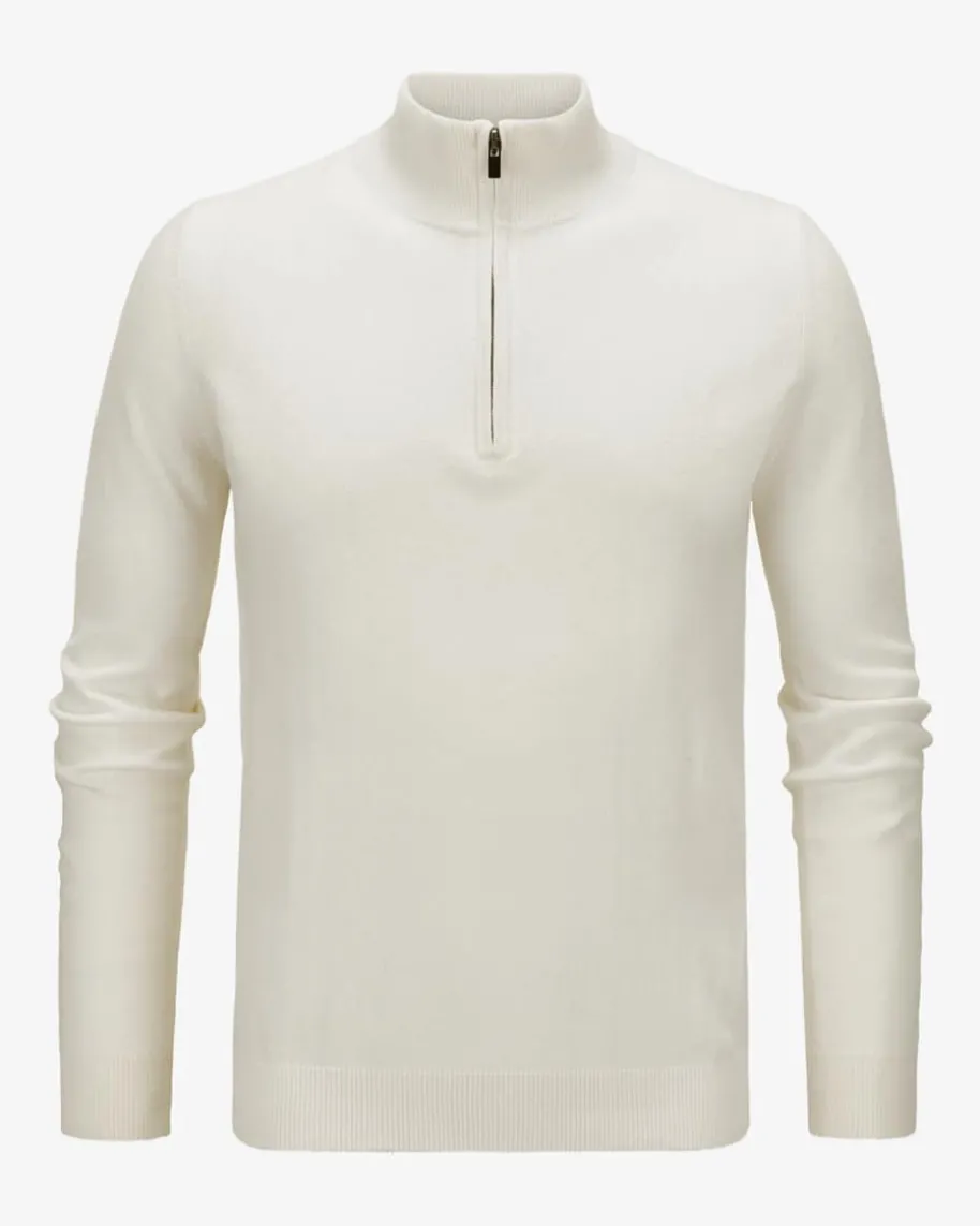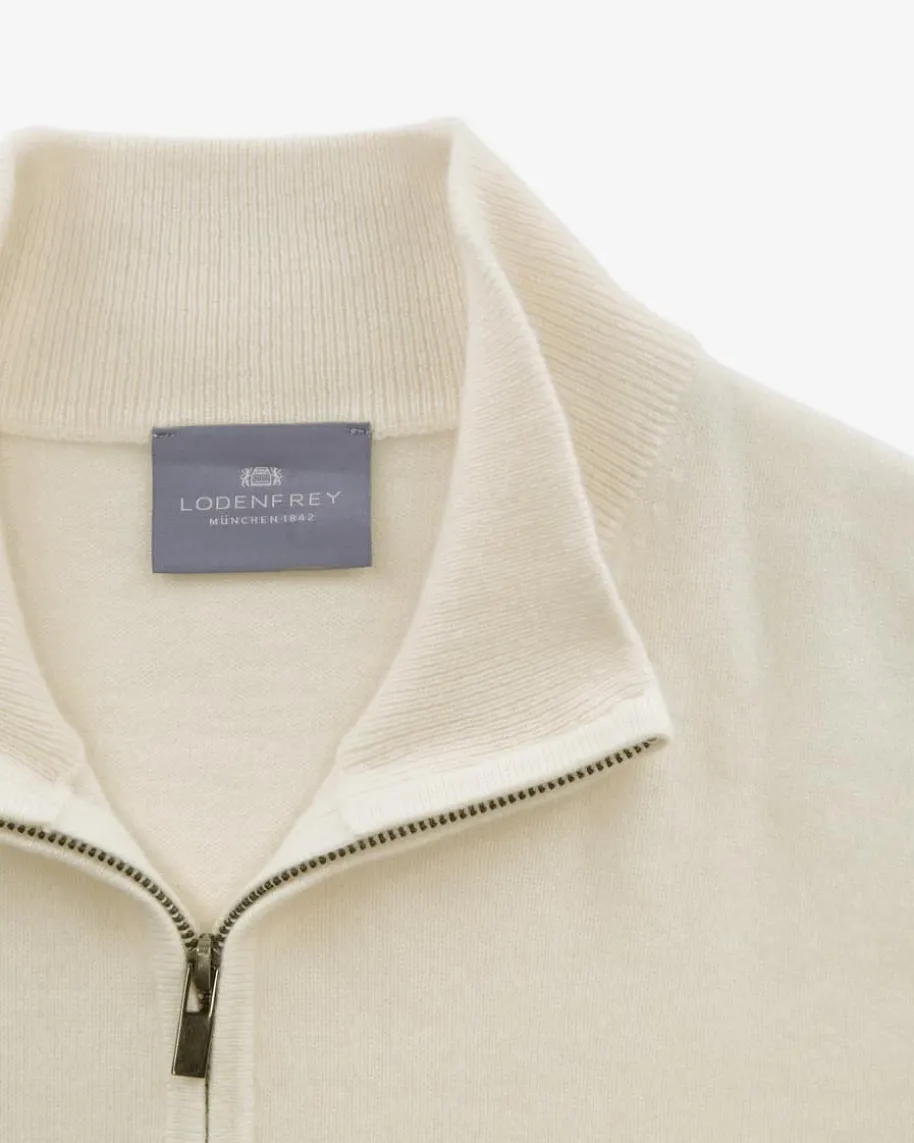 Cashmere-Pullover für Herren von LODENFREY in Off-White. Das schlichte Modellaushochwertigem Cashmere überzeugt dank dem klassischen Strick-Design als zeitloserCasual-Favorit, während der moderne Troyer-Kragen modische Akzente setzt.