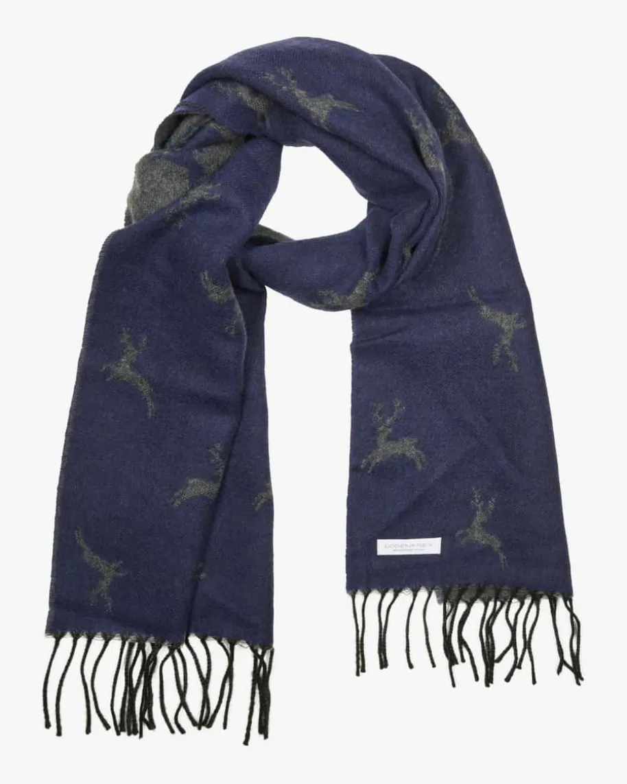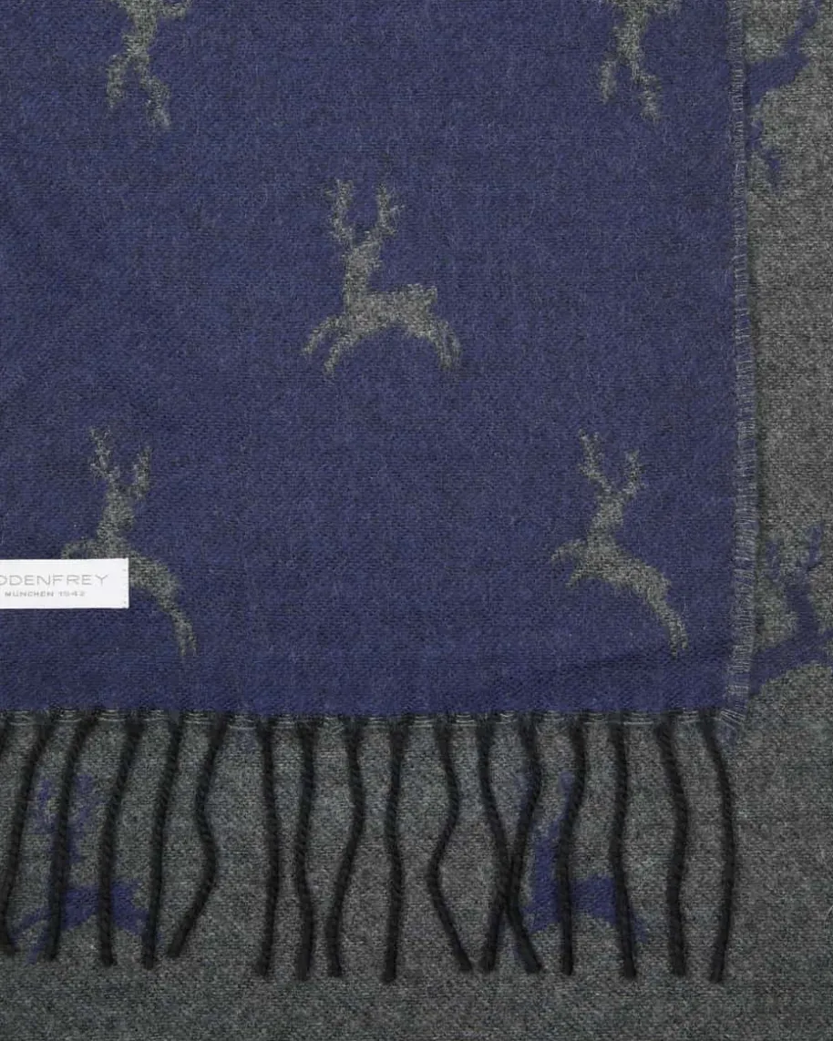 Cashmere-Wendeschal für Herren von LODENFREY in Dunkelblau und Anthrazit. Dankhochwertiger Cashmere-Woll-Verarbeitung begeistert das Wende-Modell mitbesonders weichem Griff, während das dezente Hirsch-Dessin ein modischesGesamtbild kreiert und es so zum perfekten Casual-Begleiter avanciert.