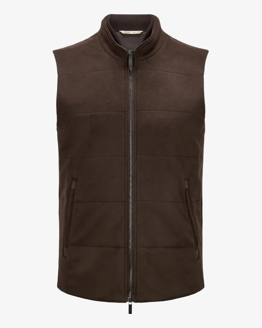 Cashmere-Weste für Herren von Maurizio Baldassari in Chocolate. Das dezentgesteppte Modell präsentiert sich dank hochwertiger Cashmere-Qualität in edlerAufmachung, welche die Rippstrick-Elemente leger ergänzen. Gleichzeitig sorgtdie nachhaltige, besonders leichte Thermore®-Füllung für eine optimaleWärmeisolierung und begeistert zudem durch seine atmungsaktive sowiepflegeleichte Eigenschaft.