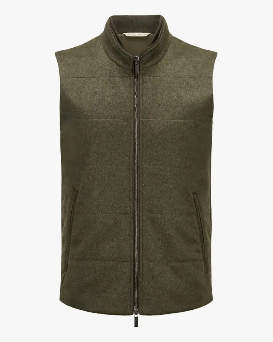 Cashmere-Weste für Herren von Maurizio Baldassari in Oliv. Das dezentgesteppte Modell präsentiert sich dank hochwertiger Cashmere-Qualität in edlerAufmachung, welche die Rippstrick-Elemente leger ergänzen. Gleichzeitig sorgtdie nachhaltige, besonders leichte Thermore®-Füllung für eine optimaleWärmeisolierung und begeistert zudem durch seine atmungsaktive sowiepflegeleichte Eigenschaft.