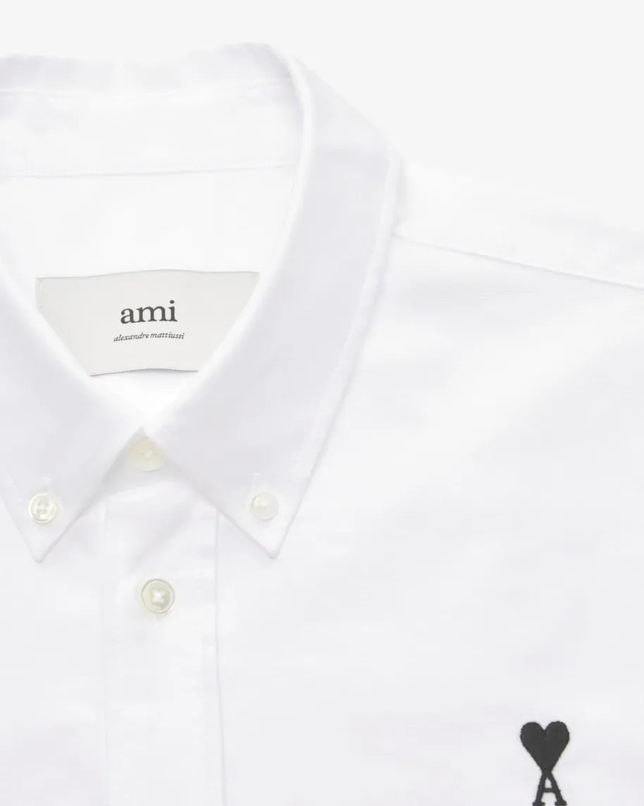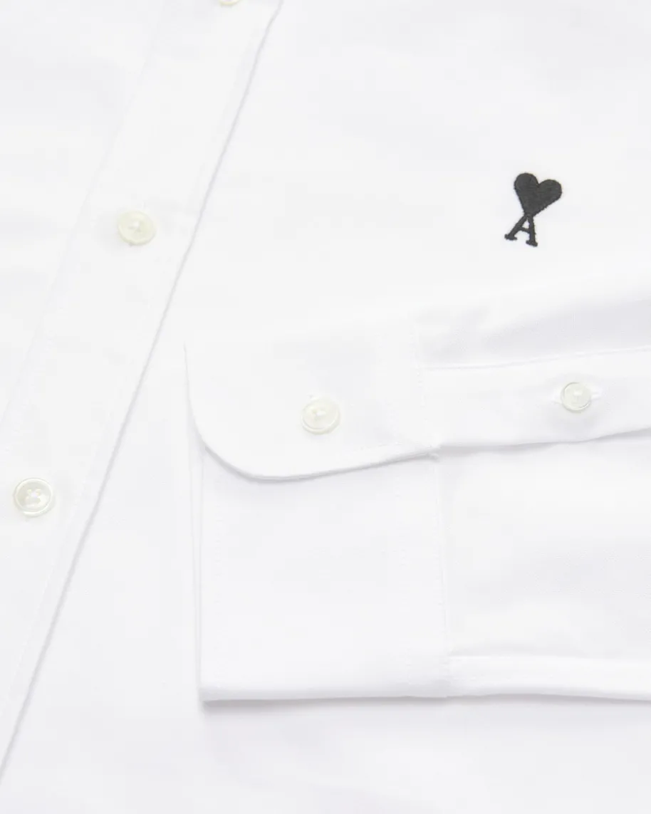 Casualhemd für Herren von Ami Paris in Weiß. Dank der raffinierten Oxford-Qualität und schmalem Button-Down-Kragen präsentiert sich das Modell in modernerAufmachung, während die Logo-Stickerei charakteristische Akzente setzt.