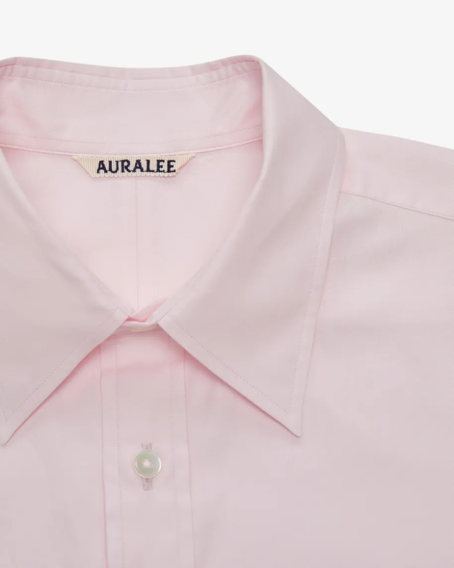 Casualhemd für Herren von Auralee in Hellrosa. Das hochwertige Modell ausweicher Baumwolle besticht mit einer angenehmen Haptik, während die schlichteSchnittführung einen vielseitigen Begleiter für modische Looks kreiert.