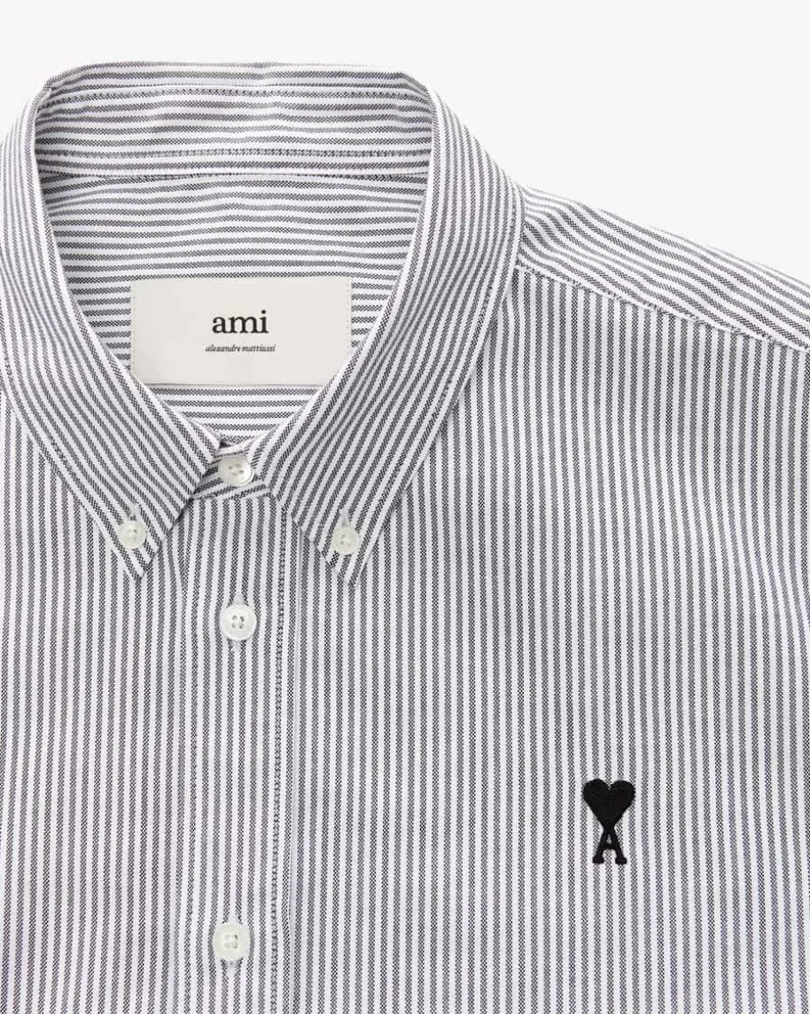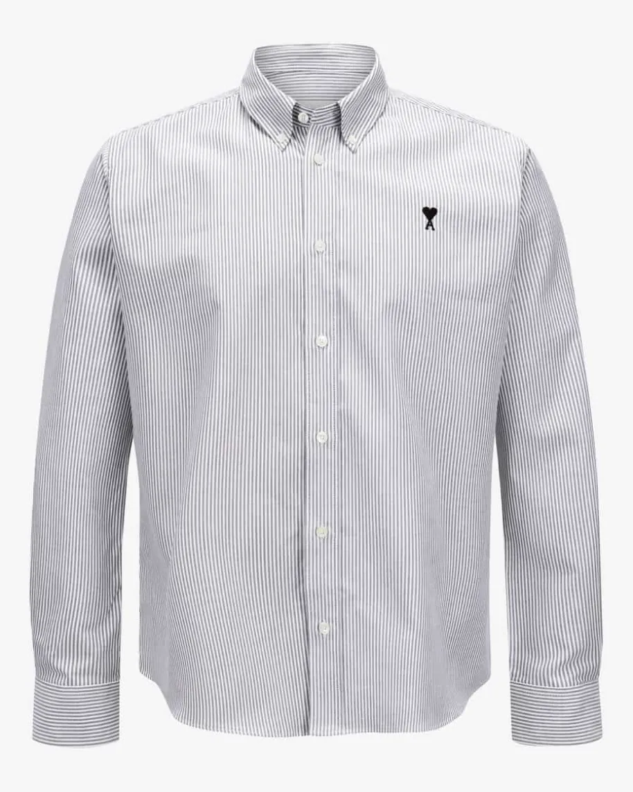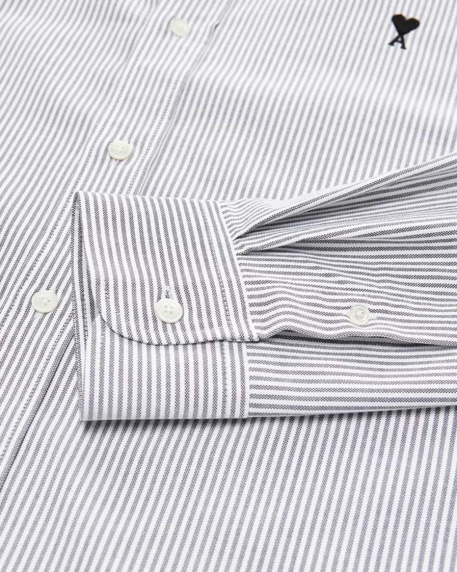 Casualhemd für Herren von Ami Paris in Grau und Weiß. Ami Paris ist das begehrtePariser Label, das mit seiner hochwertigen, minimalistischen Streetwearbegeistert – Auch dieses klassische Modell aus hochwertiger Baumwolle überzeugtmit feinen Webstreifen und wird durch die ikonische Herz-Stickerei zu einemmodischen Favoriten in ihrem Kleiderschrank.