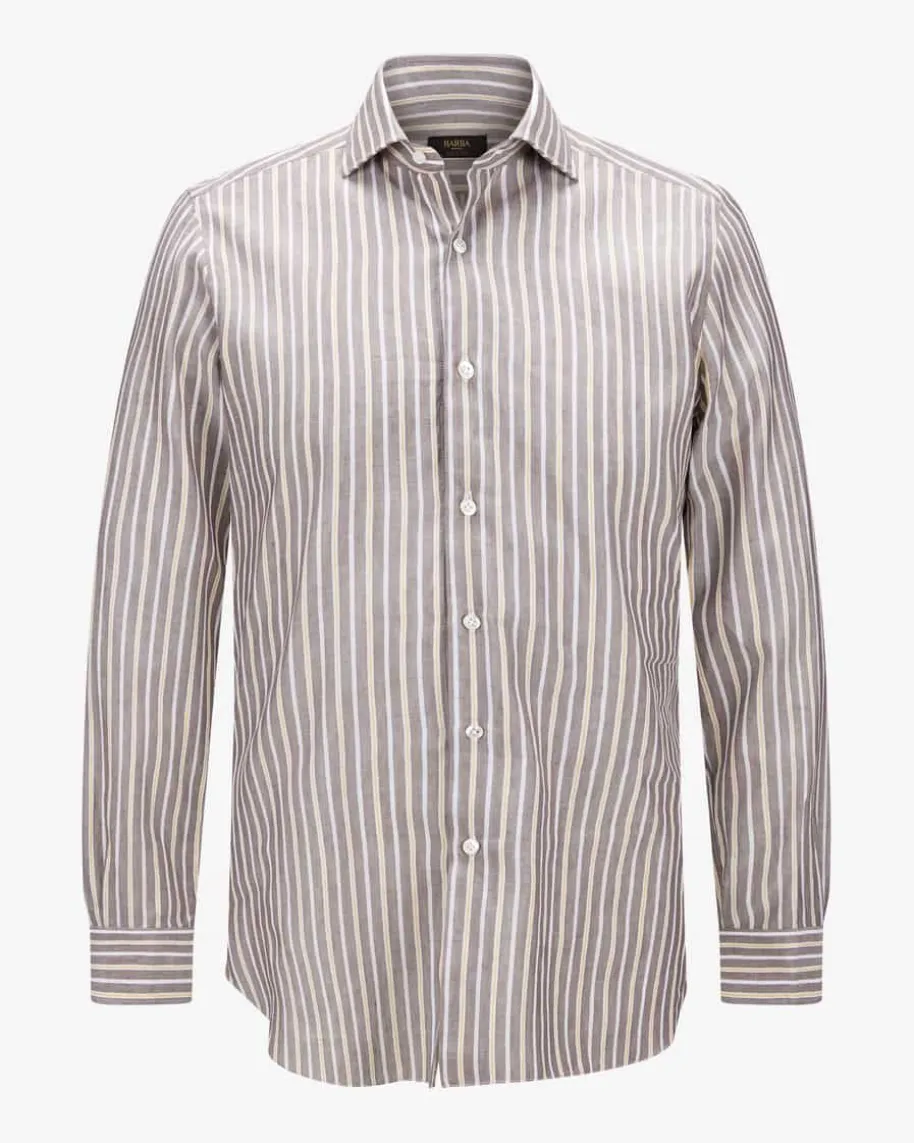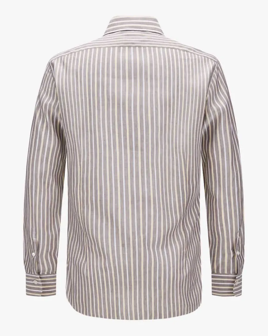 Casualhemd für Herren von Barba in Braun, Gelb und Weiß. Das Modell präsentiertsich dank klassischen Details in legerer Aufmachung, während das modischeStreifen-Dessin einen stilsicheren Favoriten für Ihren Kleiderschrank kreiert.