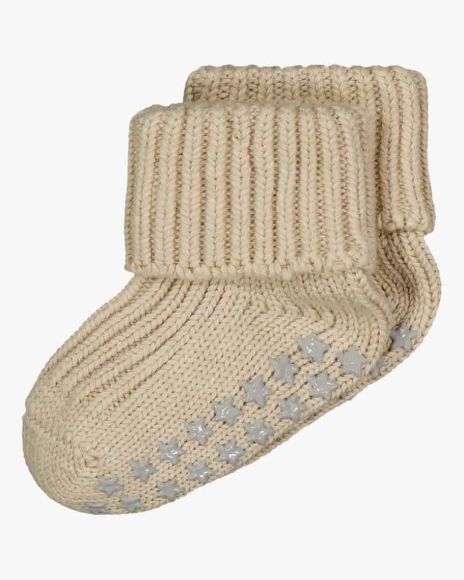 Baby-Socken von Falke in Beige. Der Hausstrumpf aus weicher, strapazierfähigerBaumwolle hält Kinderfüße wohlig-warm. Er besitzt eine perfekte Passform durcheinen Elastanbund im Fesselbereich. Der rutschsichere Sohlendruck aus kleinenSternchen verhindert das Ausrutschen auf glattem Boden (‚ABS‘). Die druckfreieSpitze unterstützt das angenehme Tragegefühl. Pflegeleicht.