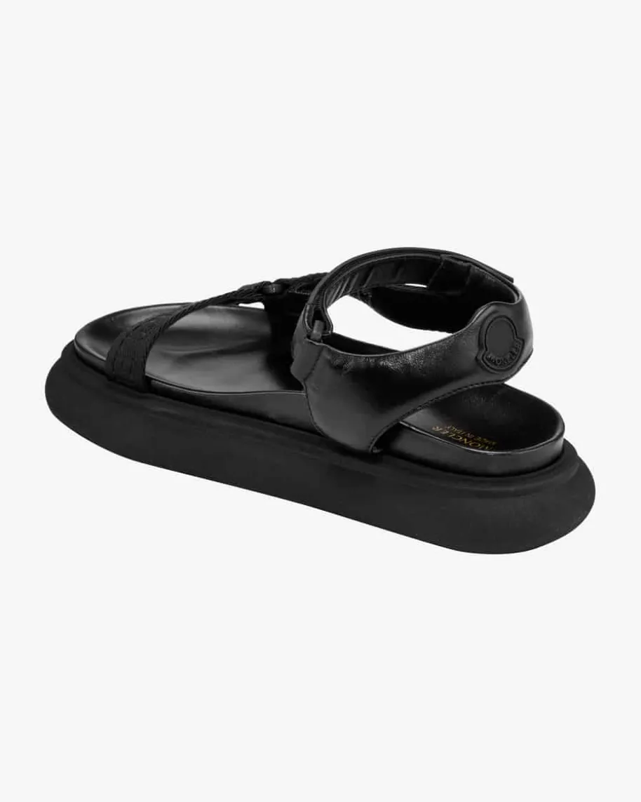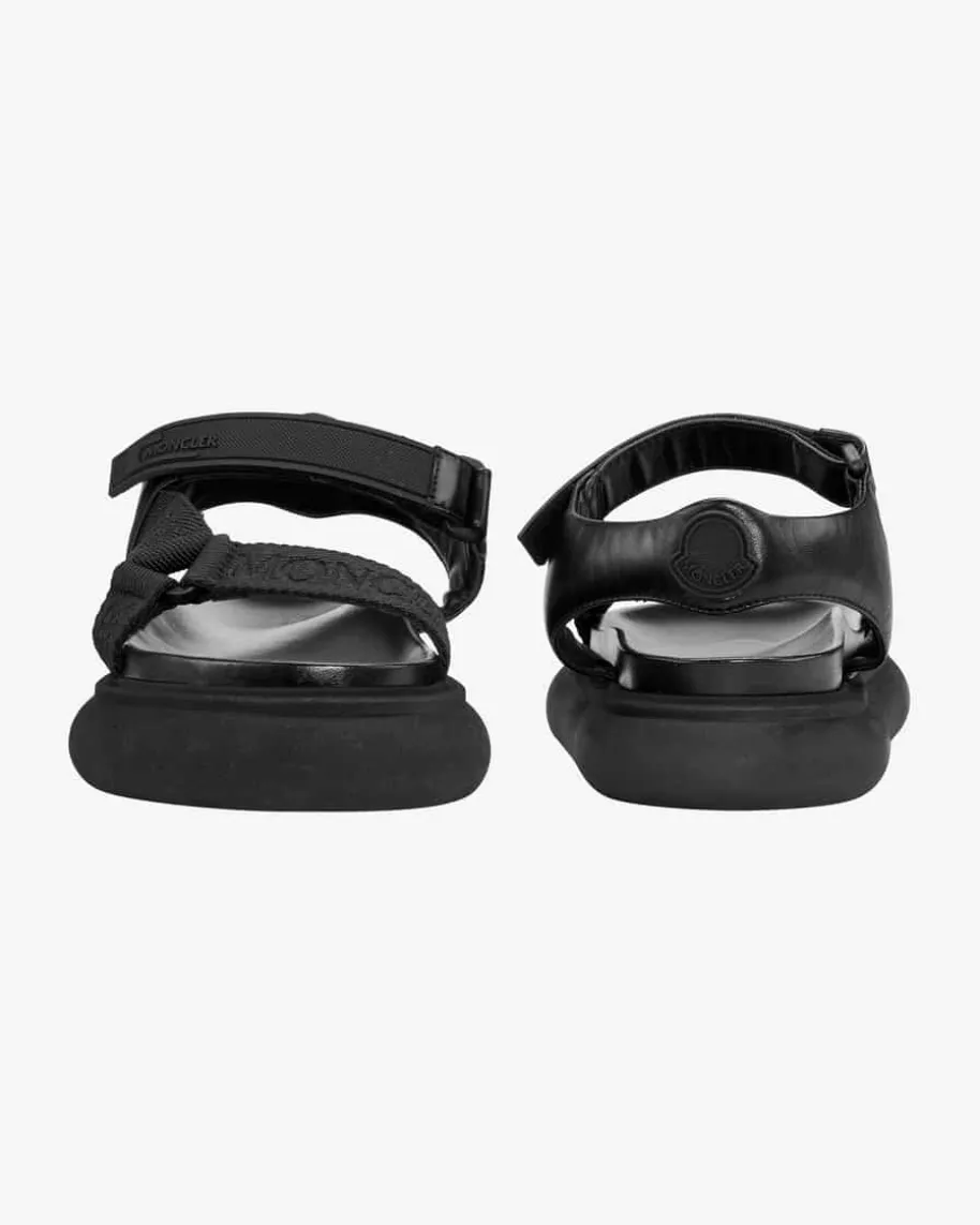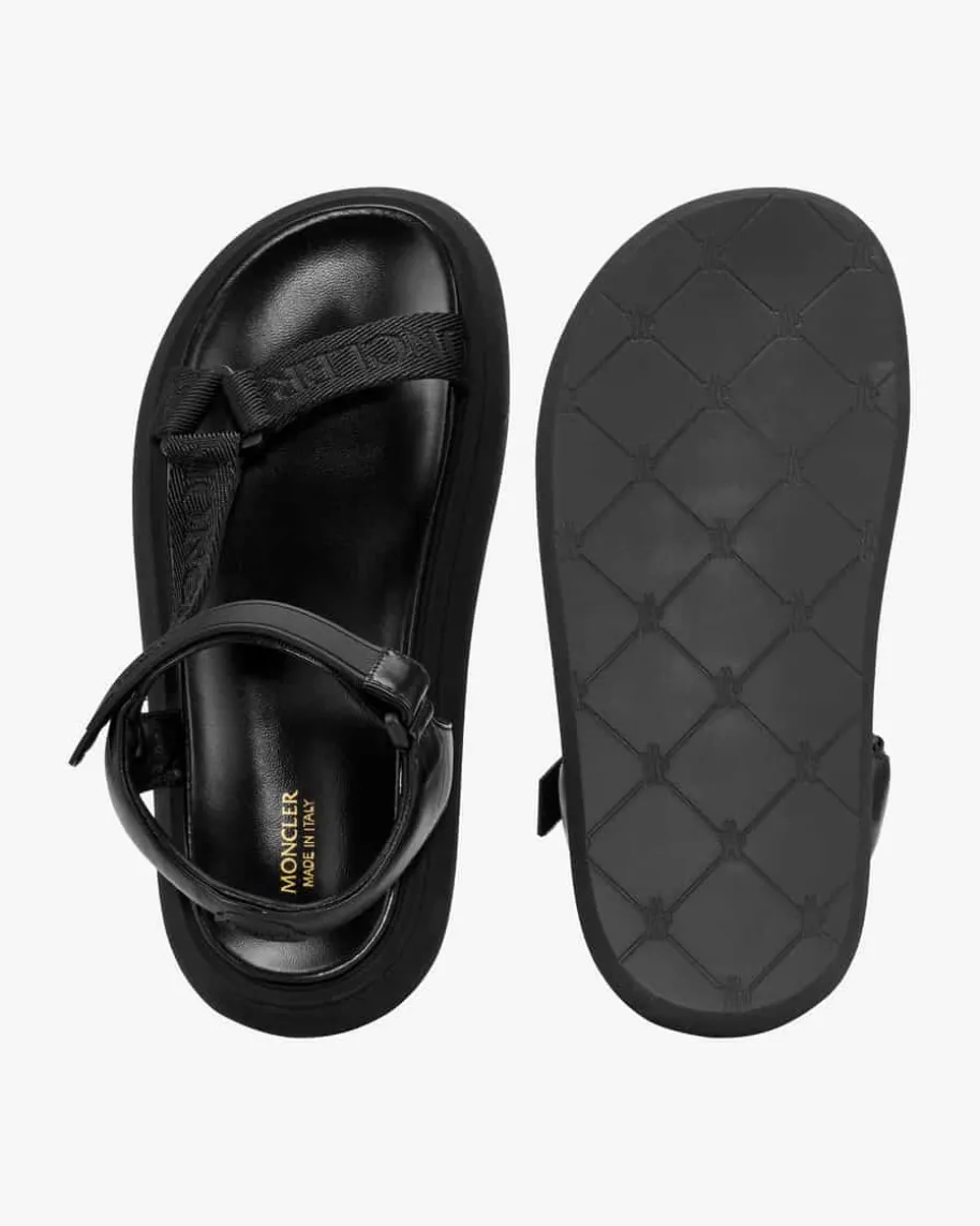 Catura Sandalen für Damen von Moncler in Schwarz. Von funktionalerBergsteigerausrüstung bis zu urbanem Chic – die Luxusmarke Moncler hat in ihrerfast 70-jährigen Geschichte einen beeindruckenden Wandel unternommen. Was sichnicht geändert hat, ist die sportliche Attitüde, die auch in der Sandale Caturazu merken ist: Das textile Band mit Logo-Prägung verleiht dem femininen Designden typisch funktionalen Touch.