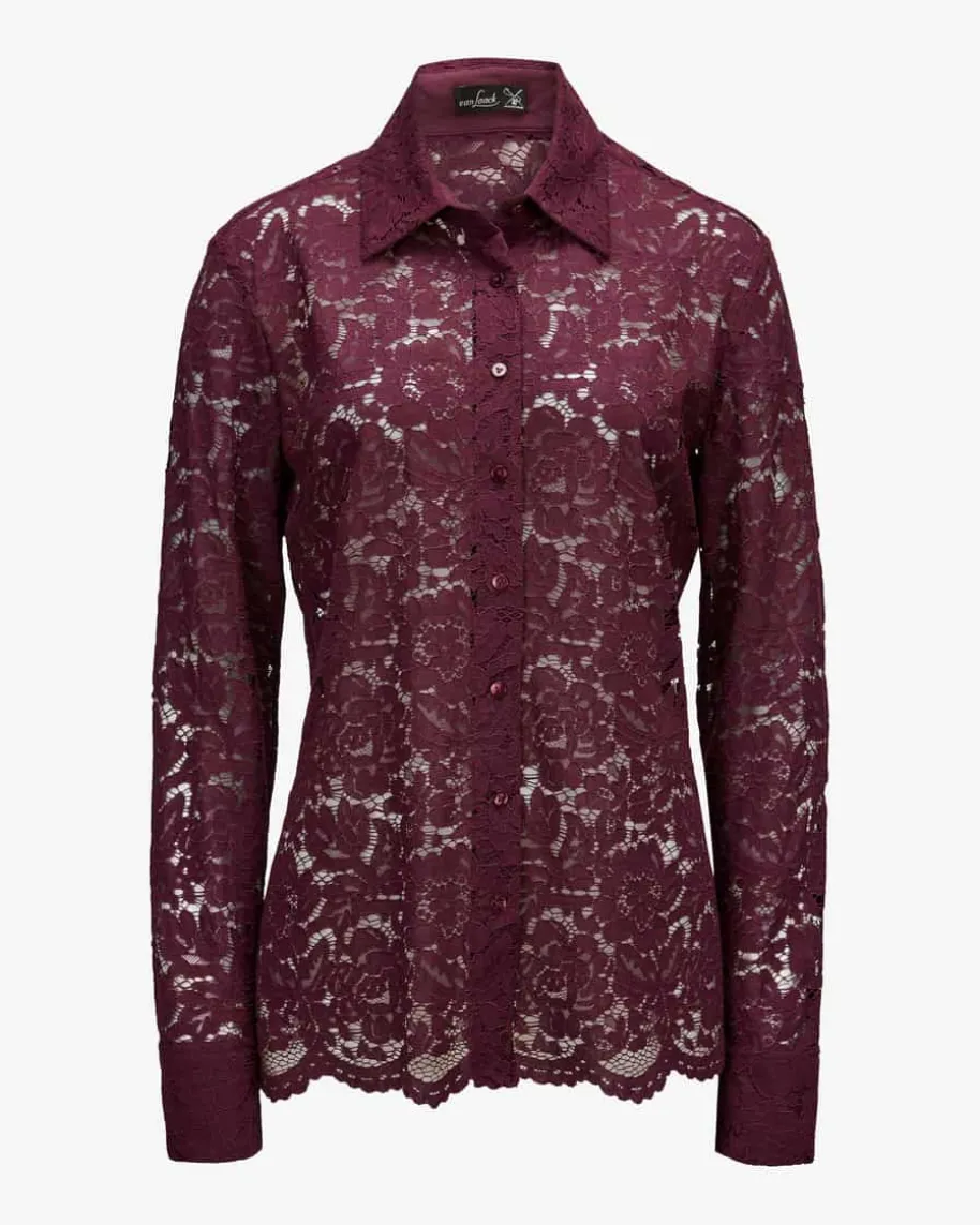 Cellai Spitzenbluse für Damen von van Laack in Bordeaux. Das Modell präsentiertsich in semi-transparentem Spitzen-Dessin in hochwertigem Baumwoll-Mix, währendklassische Details die feminine Bluse in einen vielseitigen sowie edlenBegleiter verwandeln.
