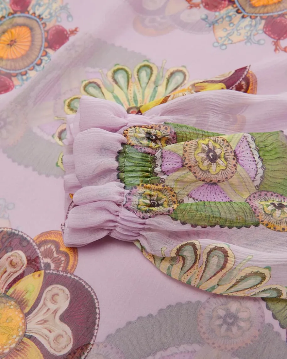 Cerere Seidenbluse für Damen von La DoubleJ in Flieder, Oliv und Hellgelb. DasMailänder Label ist bekannt für farbenfrohe Vintage-Prints, spirituelle Energieund italienischen Lebensstil. Das Modell besticht dank der semi-transparentenSeiden-Qualität und dem kreativen Allover-Print als femininer Begleiter, währenddie Rüschen-Details dem Gesamtbild einen romantischen Touch verleihen.
