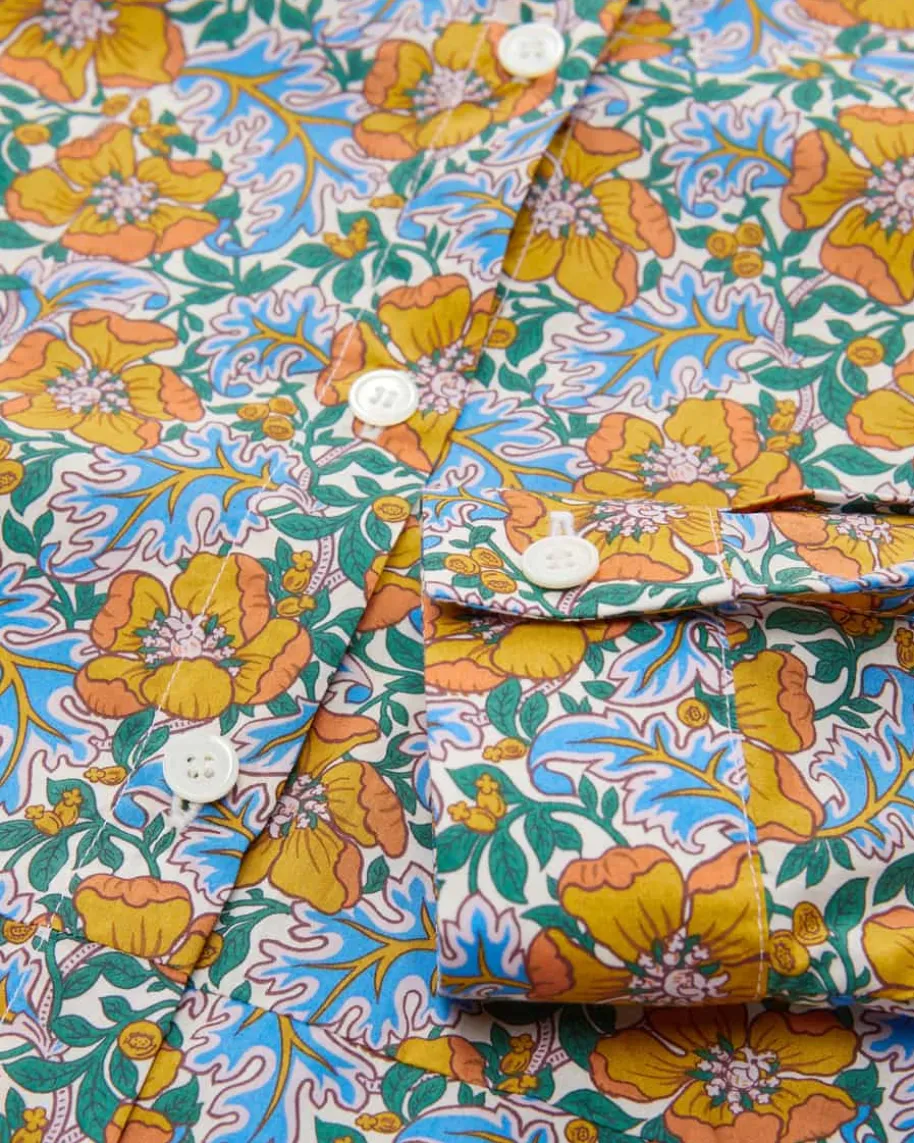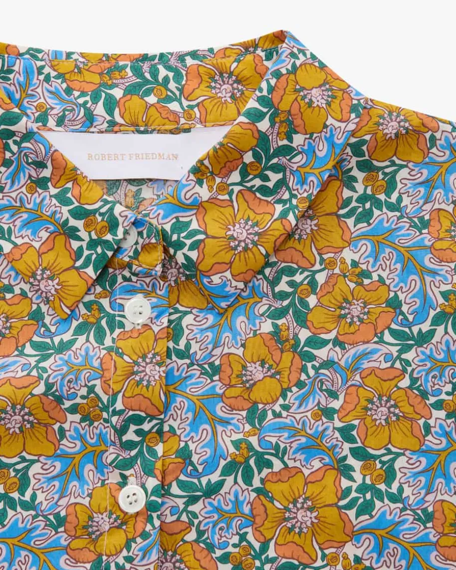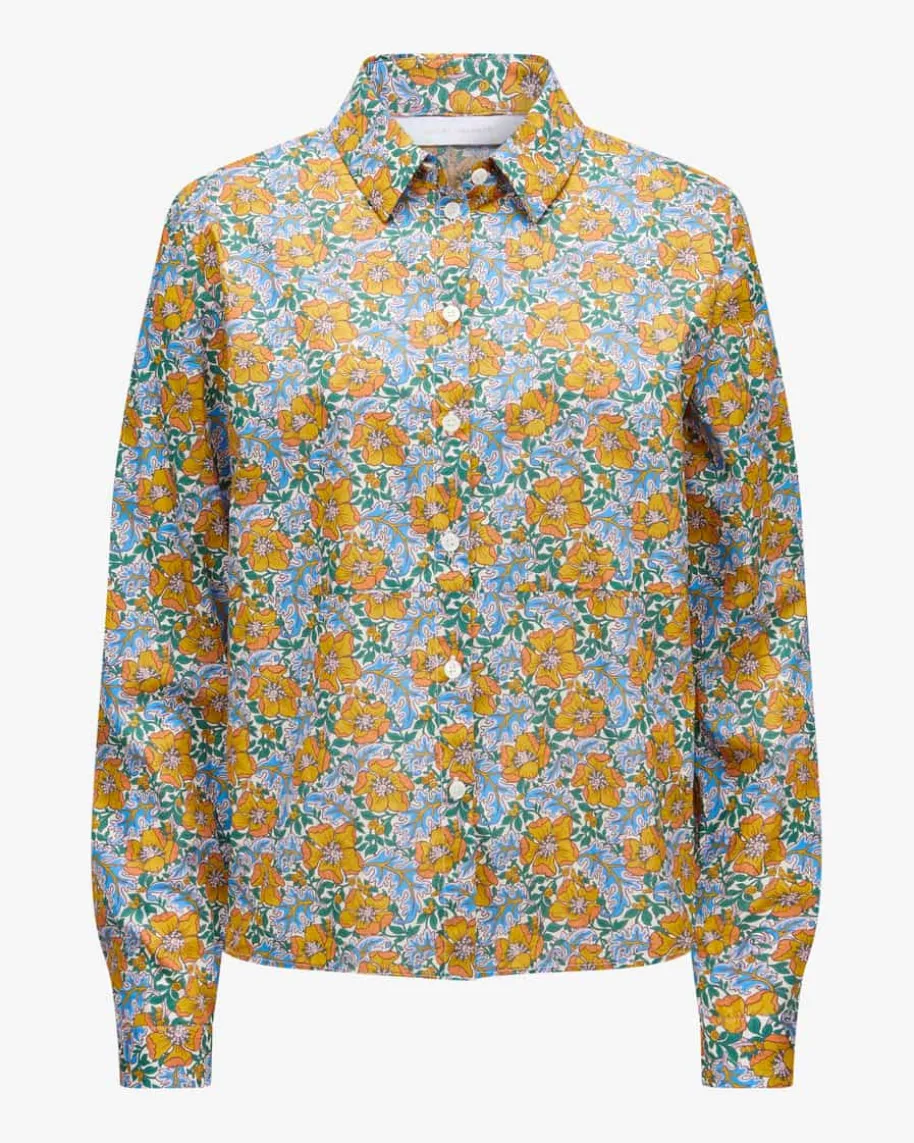 Chanty Hemdbluse für Damen von Robert Friedman in Senfgelb, Blau und Dunkelgrün.Das Label steht für hochwertige Blusen und Hemden – italienische Stoffe,deutsche Passform, internationale Klasse. Auch dieses Modell überzeugt mitleichter Baumwolle und angenehmen Tragemomenten, während das florale Mustereinen modischen Begleiter für vielseitige Styles schafft.