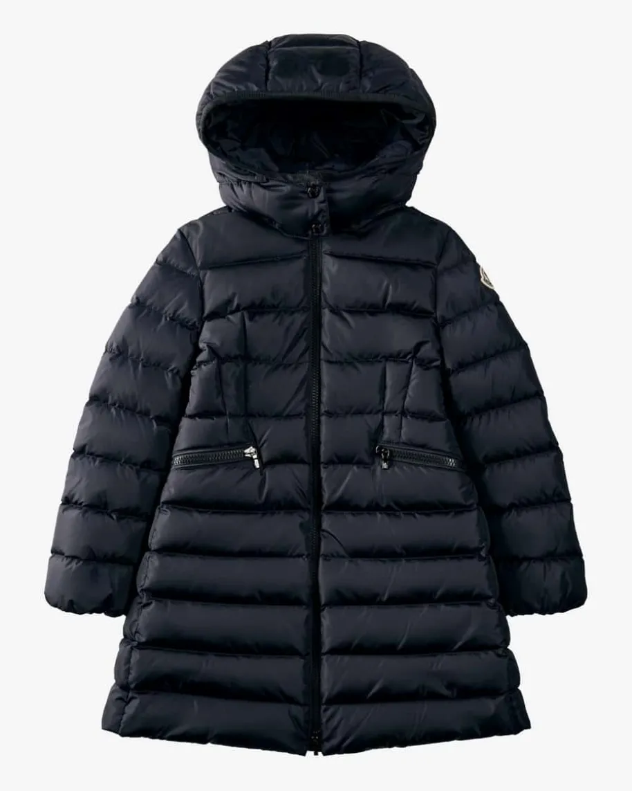 Charpal Daunenmantel für Mädchen von Moncler Enfant in Navy. Das gesteppteModell begeistert dank der taillierten Silhouette mit ausgestelltem Schnitt insüßer Aufmachung, während die hochwertige Daunen-Feder-Füllung den perfektenBegleiter für kalte Tage schafft. Die abnehmbare Kapuze und die labeltypischeLogo-Applikation runden den winterlichen Style gekonnt ab.