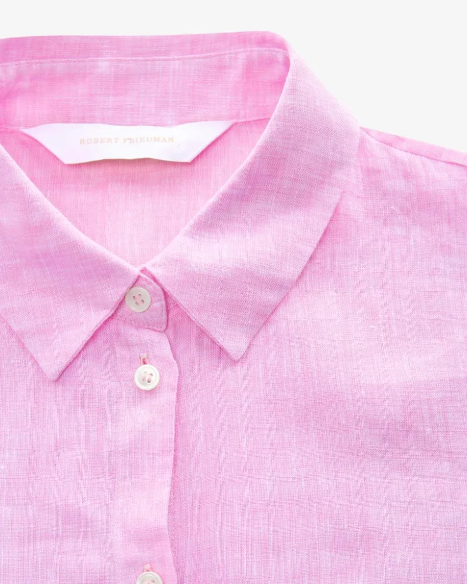 Charty Leinen-Hemdbluse für Damen von Robert Friedman in Rosa. Gefertigt aushochwertiger Leinen-Qualität, überzeugt das Modell mit seiner leichten wie auchkühlenden Eigenschaft. Die detailverliebten Elemente, die das Label auszeichnen,runden den sommerlichen Look modern ab.