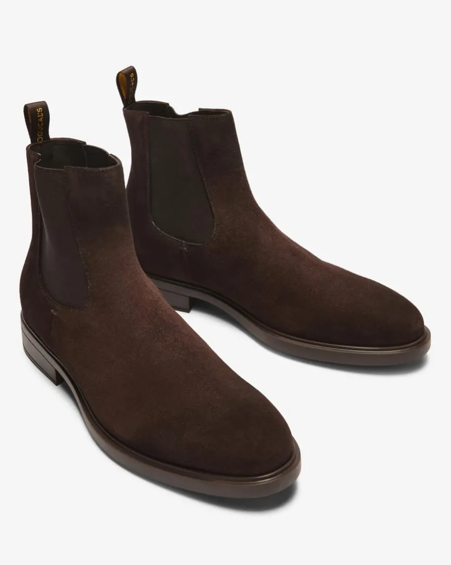 Chelsea Boots für Herren von Doucal‘s in Dunkelbraun. Das Modell präsentiertsich dank der hochwertigen Veloursleder-Aufmachung mit edler Optik, während dieGummisohle und charakteristischen Stretch-Einsätze einen hohen Komfort bieten.Zwei austauschbare Sohlen versprechen einen flexiblen Tragekomfort.