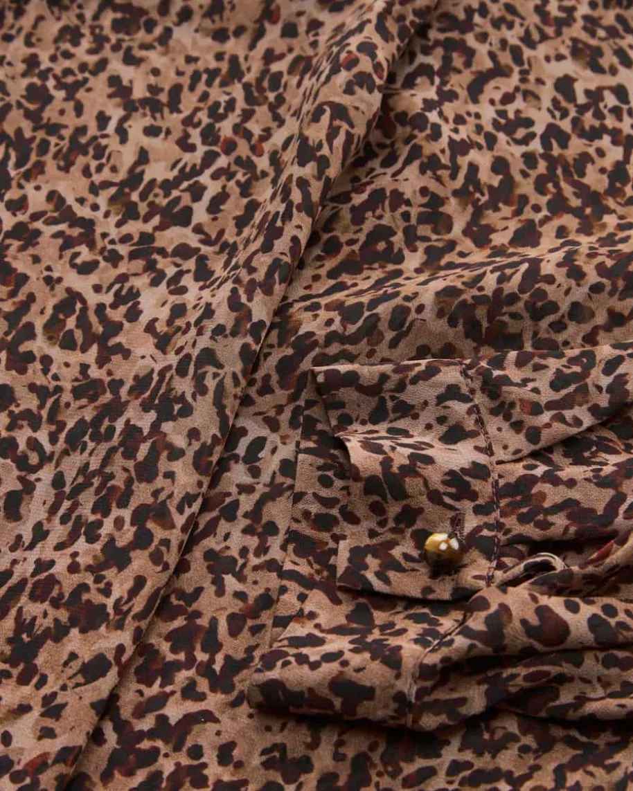 Chiffonbluse für Damen von Luisa Cerano in Bordeaux und Schwarz. Das Modellbegeistert mit fließender Silhouette und avanciert zusammen mit dem modernenLeomuster zum romantischen Favoriten. Das semi-transparente Design mit Falten-Details vollendet den femininen Look harmonisch.