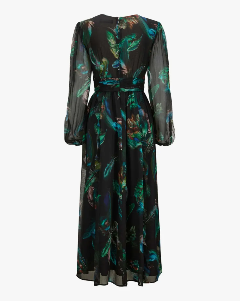 Chiffonkleid für Damen von Marc Cain in Schwarz, Jade und Blau. KombistarkeDesigns mit hohem Qualitätsanspruch – bekannt für Prints & Strick. Auch diesestaillierte Modell in semi-transparenter Aufmachung überzeugt mit femininerSilhouette, während das romantische Feder-Design den Gesamtlook gekonntvollendet.