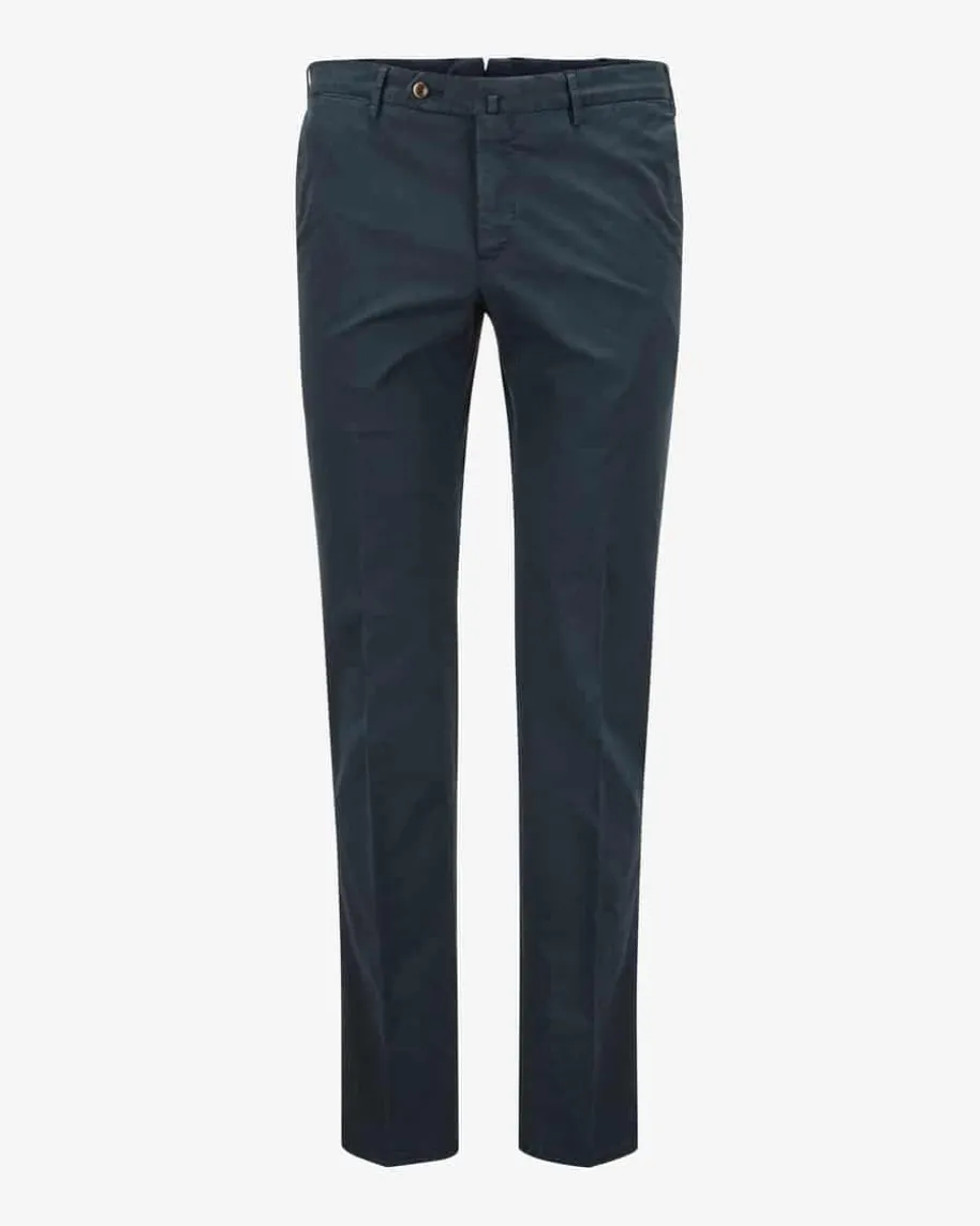 Chino Slim Fit Stretch für Herren von PT Torino in Navy. Das Modell begeistertdank der elastischen Baumwoll-Qualität mit angenehmen Tragemomenten, währendklassische Details und die Bügelfalten den zeitlosen Look gekonnt abrunden.