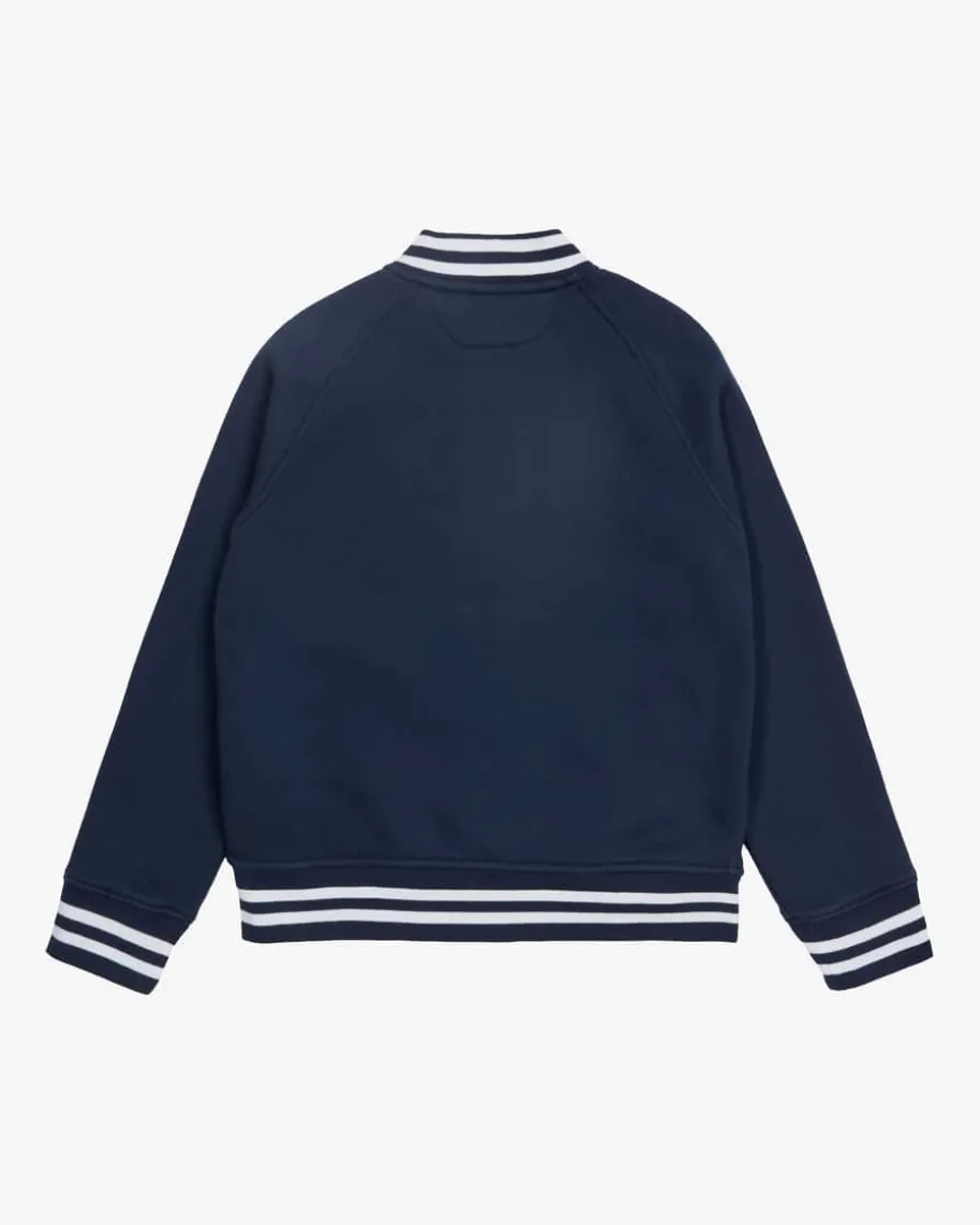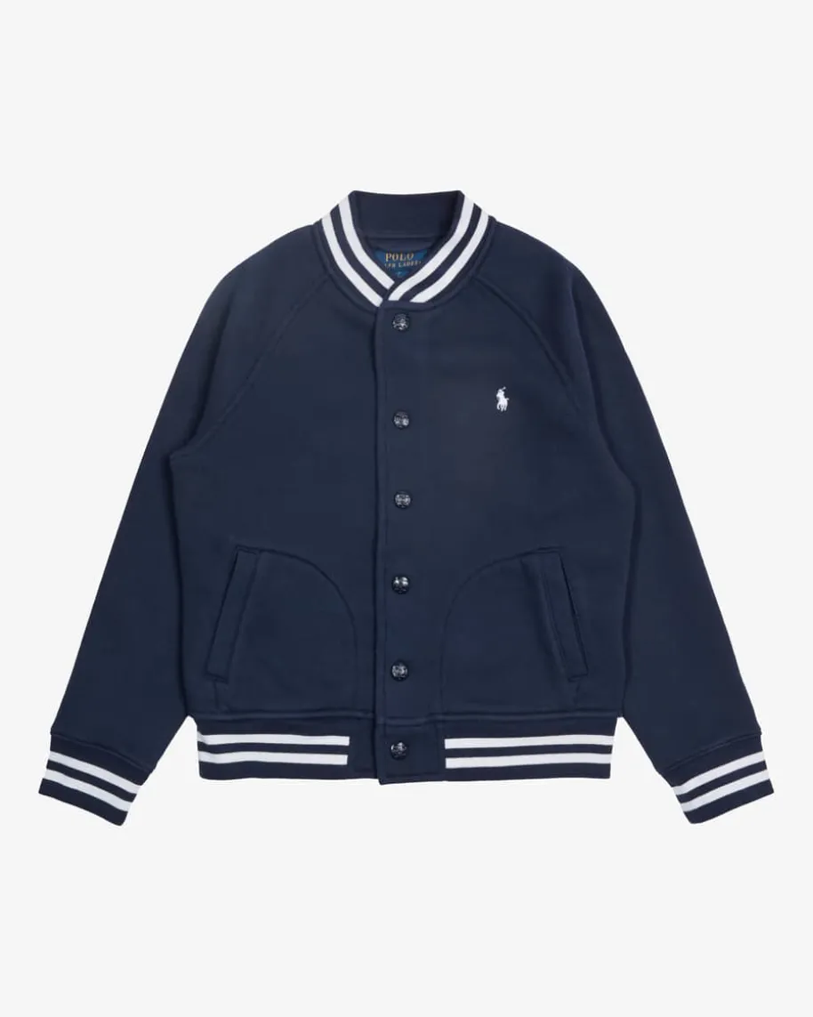 Collegejacke für Kinder von Polo Ralph Lauren in Navy und Weiß. Die Sweatjackeverspricht dank besonders weicher Innenseite angenehme Tragemomente, während dieKontraststreifen sowie die labeltypische Reiter-Stickerei sportive Akzentesetzen.