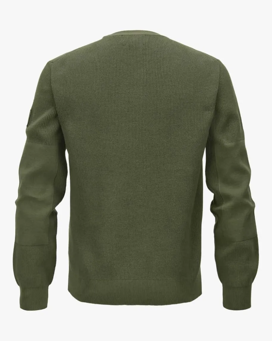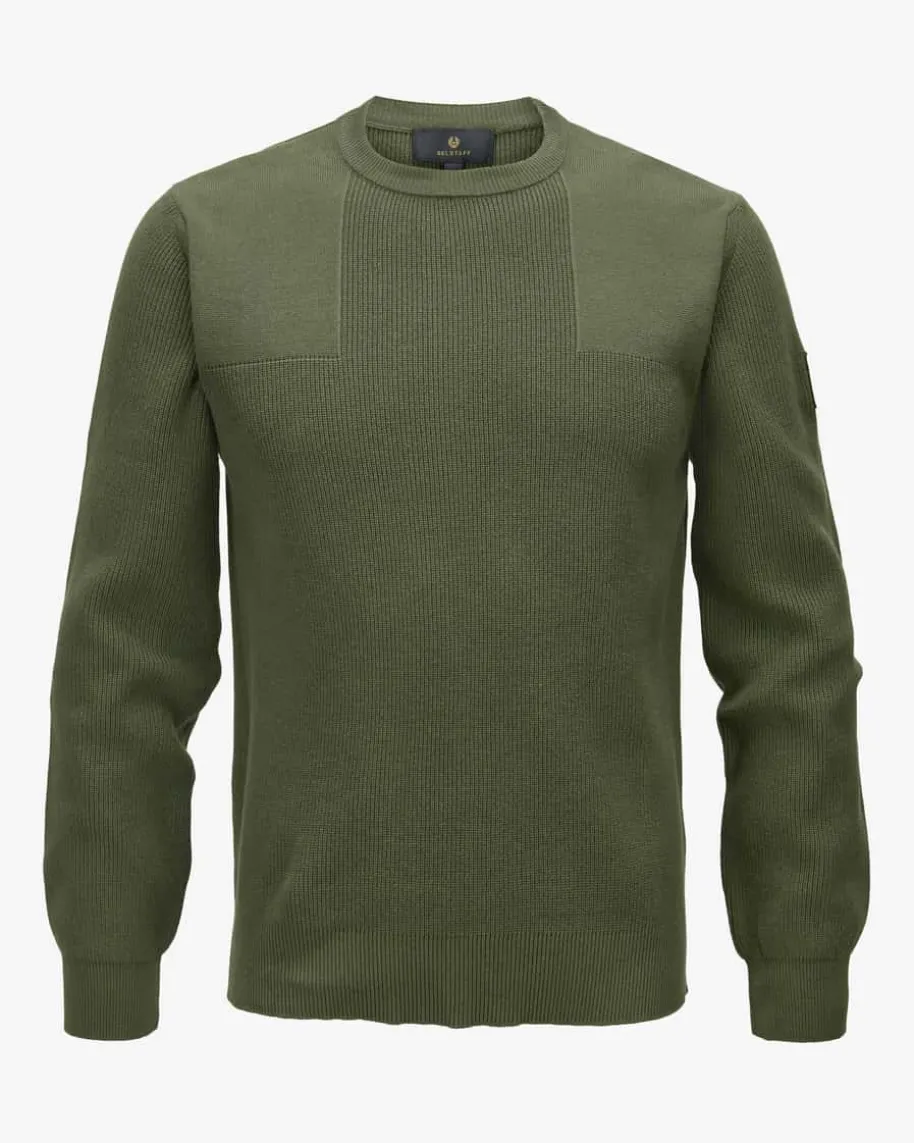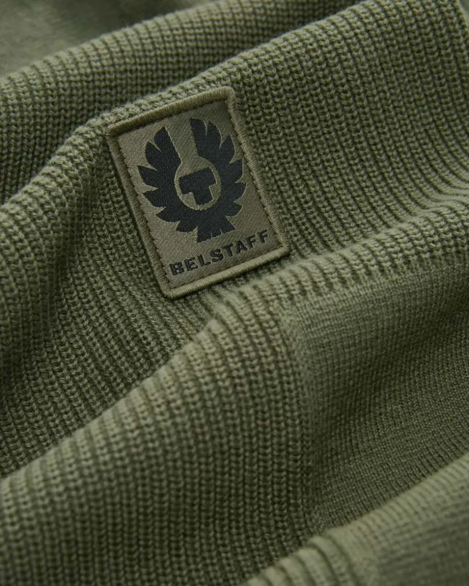 Commander Pullover für Herren von Belstaff in Oliv. Das Modell ausmerzerisierter Baumwolle besticht neben der angenehmen Rippstrick-Haptik auchdank dem legeren Design mit zulaufenden Bündchen als modisch-maskuliner Favoritmit labeltypischem Ärmel-Patch.