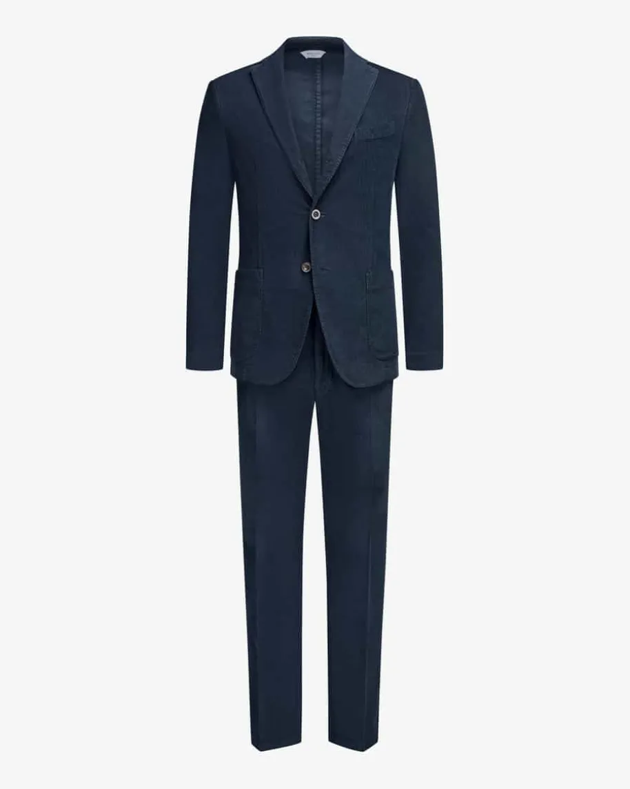 Cord-Anzug für Herren von Boglioli in Navy. Made in Italy – Das ungefütterteModell besticht dank feiner Cord-Aufmachung aus hochwertigem Baumwoll-Mix sowohlmit softer Haptik als auch modernem Heritage-Look, während klassische Detailsdas maskuline Gesamtbild stilvoll vollenden.