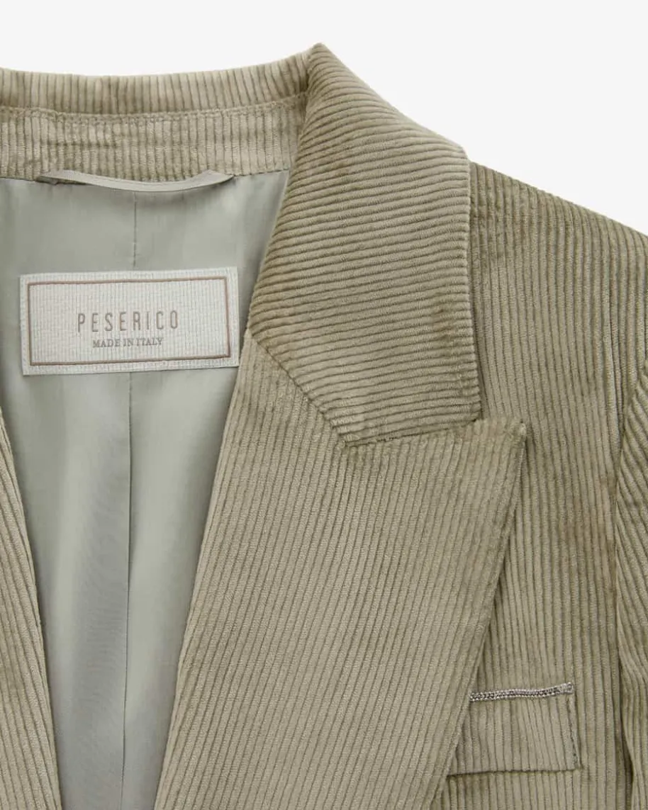 Cord-Blazer für Damen von Peserico in Salbei. Das Modell präsentiert sich inklassischer Aufmachung, während die Cord-Optik und silberfarbeneSchmuckketten-Details einen zeitlosen und zugleich edlen Look für vielseitigeStyles kreieren. In Kombination mit der passenden Hose erhalten sie einenmodernen Allover-Look.