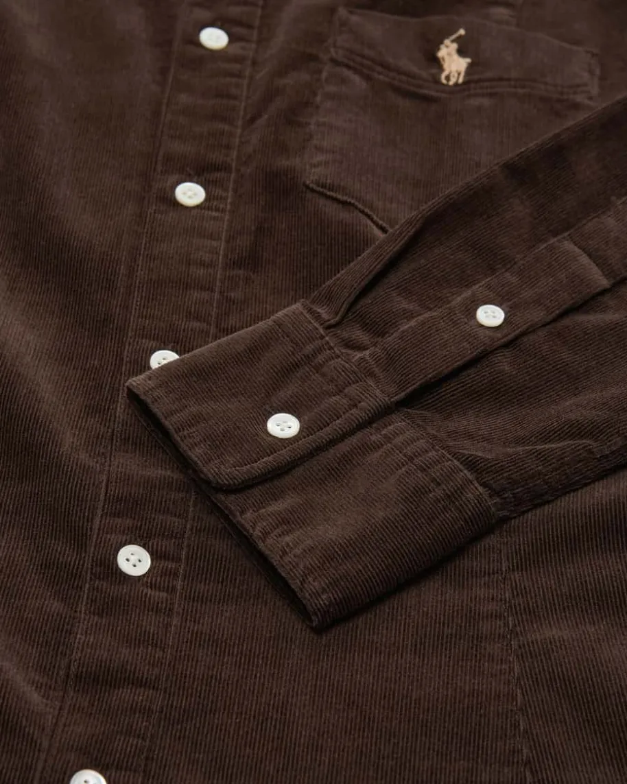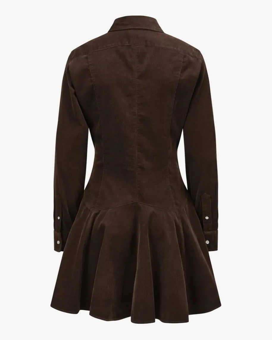 Cordkleid für Damen von Polo Ralph Lauren in Braun. Dank feiner Cord-Qualitätüberzeugt das Modell sowohl haptisch als auch optisch, während der angesetzteVolant für einen femininen Schwung sorgt und einen spannenden Kontrast zu dersonst legeren Hemdblusen-Silhouette kreiert.