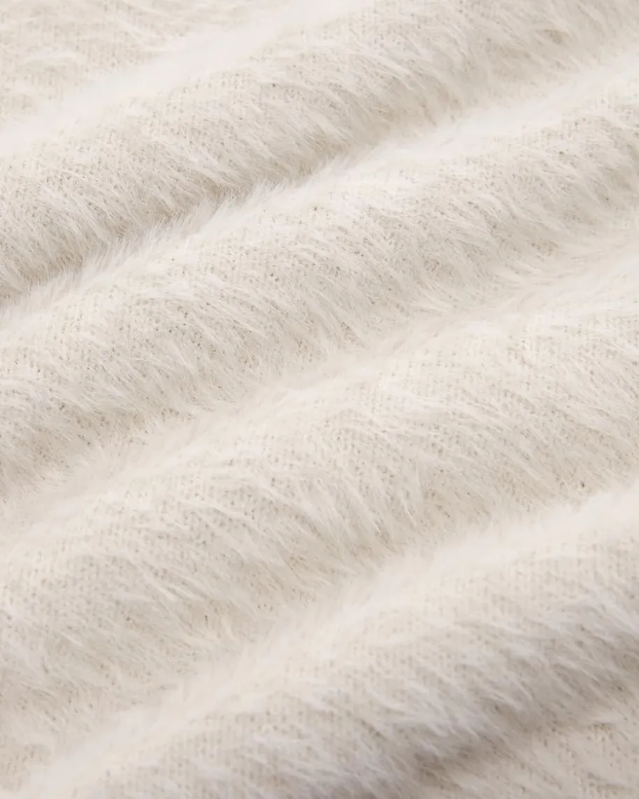 Crop Eyelash Strickshirt für Damen von Helmut Lang in Ecru. Das Modell überzeugtdank der besonders weichen Verarbeitung mit angenehmen Tragemomenten, währenddie haarige Strick-Optik zusammen mit den Rippstrick-Bündchen dem sonstschlichten Style einen besonderen Touch verleihen.