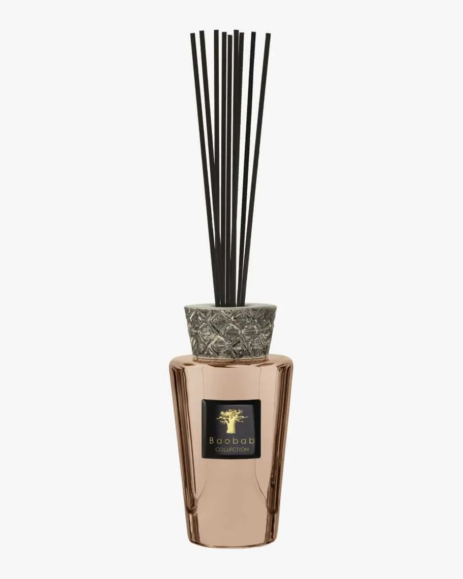 Cyprium Raumduft von Baobab in Rose. Der Raumduft-DiffuserCyprium 250 mlpräsentiert sich in einem Glasgefäß in metallischer Kupfer-Optik und wird von einem schwarzen Bakelit Verschluss miteingraviertem Wurzelmuster gekrönt. Das klassische undelegante Design fügt sichperfekt und diskret in alle Räume ein.