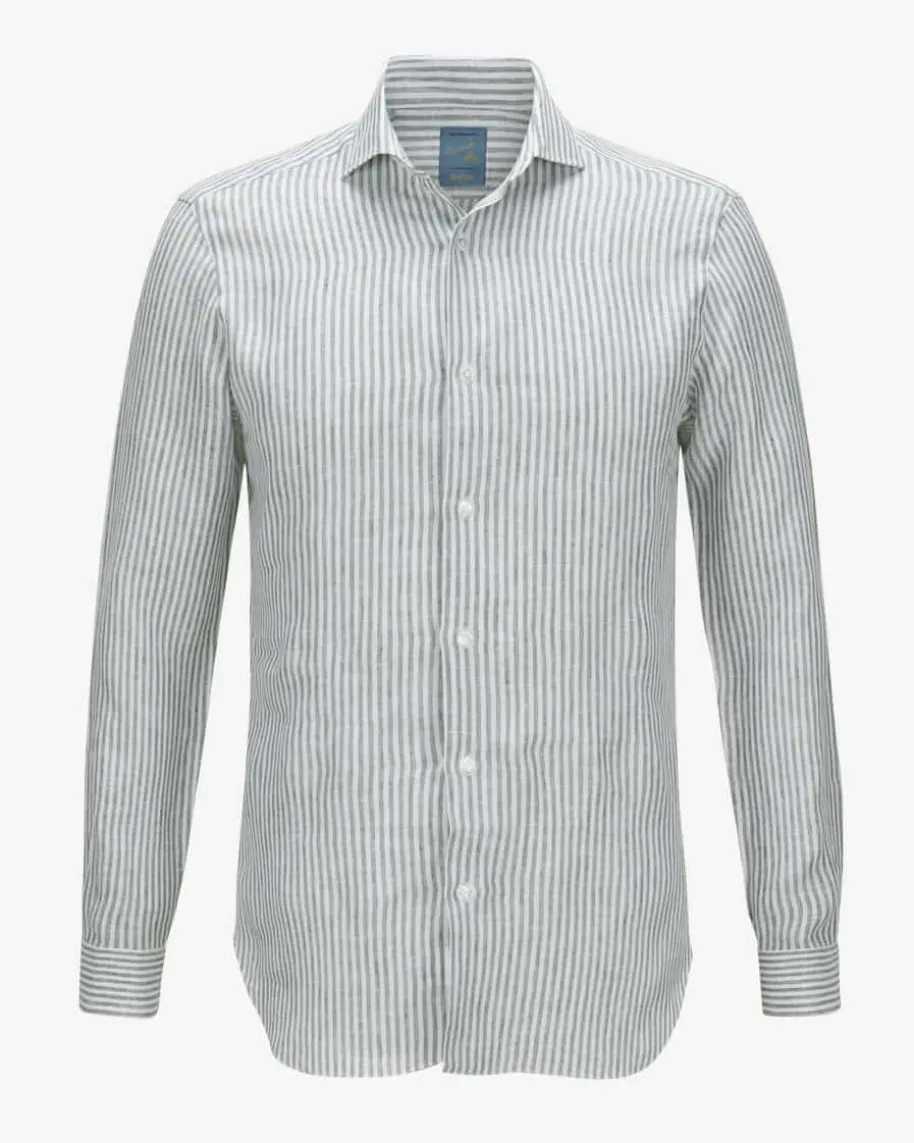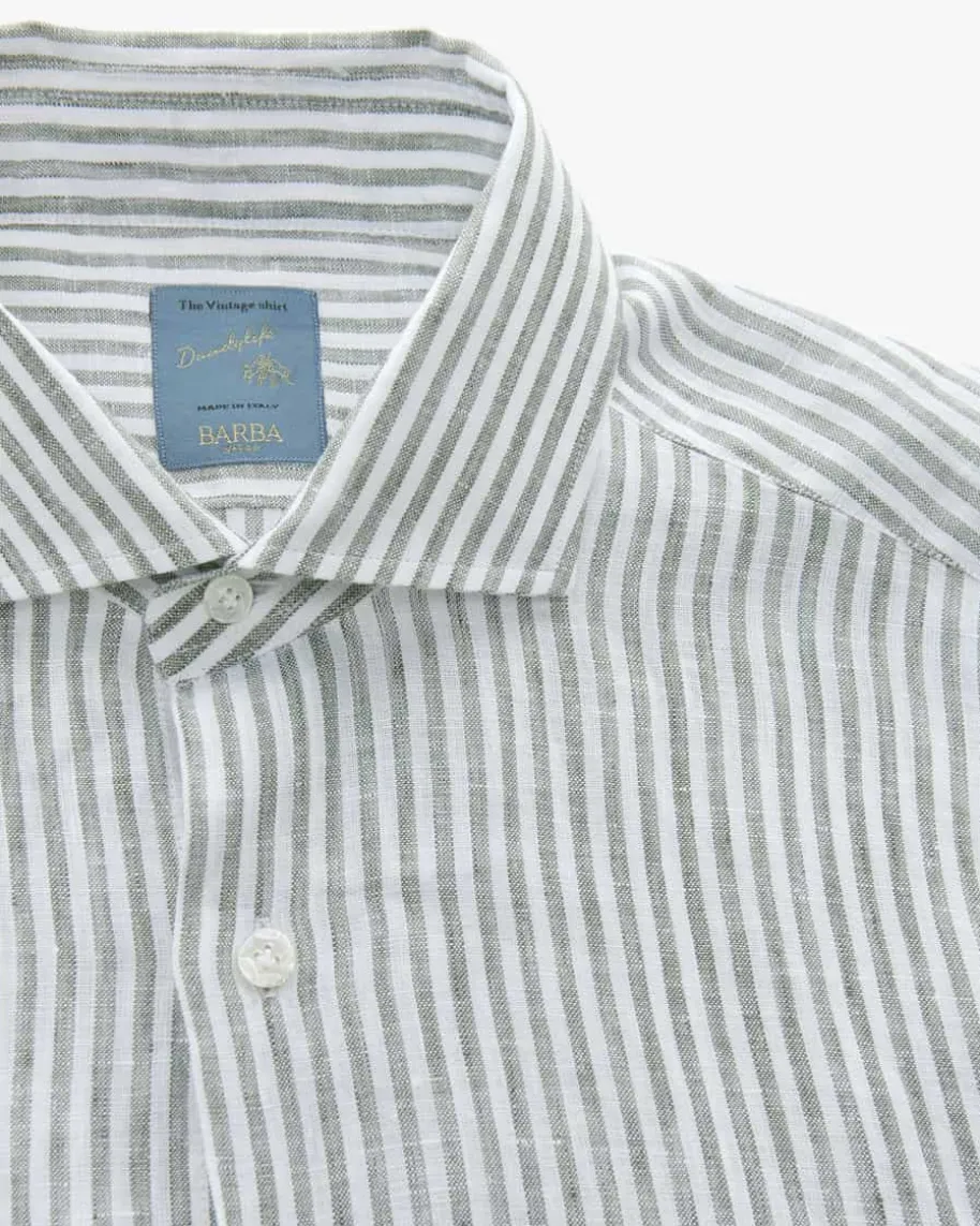 Dandy Life Leinenhemd für Herren von Barba in Oliv und Weiß. Für eleganteLinien, körperbetonte Schnitte sowie höchste Präzision ist das Label bekannt.Das Modell aus der „The Vintage Shirt“-Reihe kreiert mit klassischen Details undstilvollem Streifen-Dessin einen zeitlos-modernen Look, während die leichteLeinen-Verarbeitung eine kühlende Haptik verspricht.