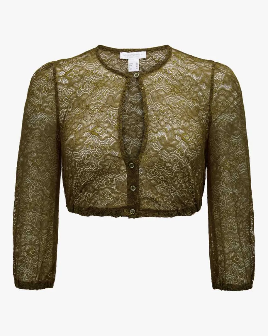 Daniela Dirndlbluse für Damen von LODENFREY München 1842 in Oliv. Dank derbesonders elastischen Spitzen-Verarbeitung sowie den dezenten Ballonärmelnüberzeugt das Modell mit hohem Tragekomfort und einem traditionell-romantischenCharakter.