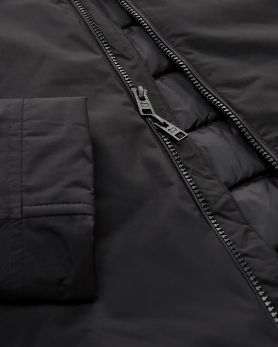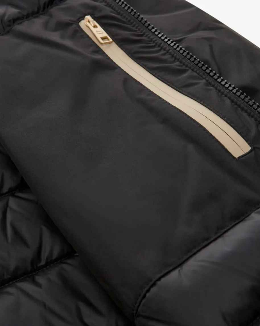 Daunen-Blouson für Herren von Woolrich in Schwarz. 1830 von John Rich inPennsylvania gegründet, erfreute sich das Label damals schon großer Beliebtheit– vor allem im Outdoor-Bereich. Auch dieses wasserabweisende Modell begeistertmit legerer Blouson-Aufmachung und leichter Wattierung mit Entendaunen-Feder-Füllung, die für angenehm wärmenden Tragekomfort sorgt. Sportive Details imBlouson-Stil runden das Design gekonnt ab.
