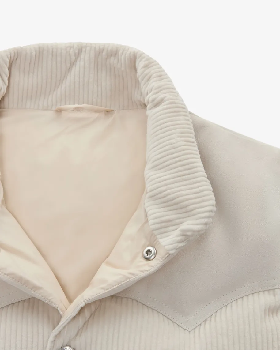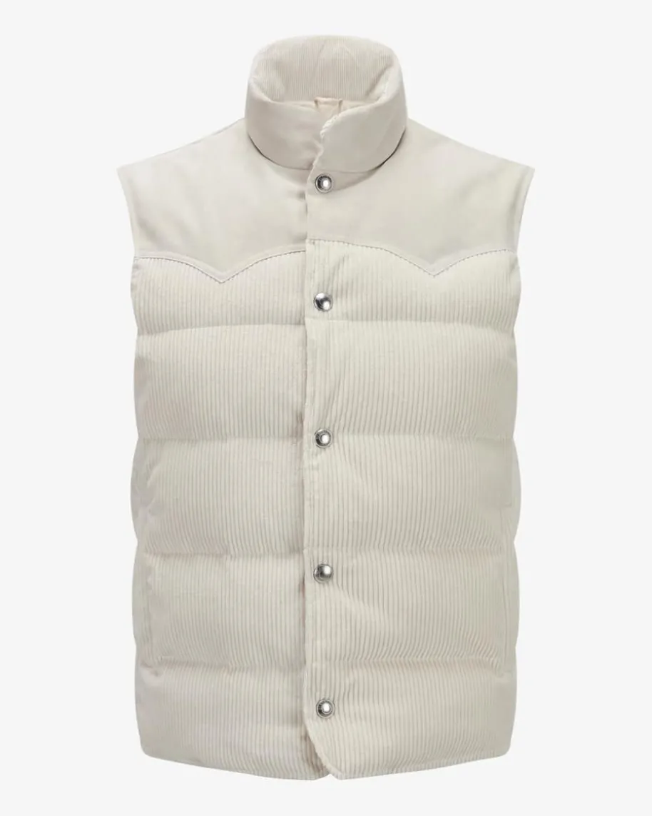 Daunen-Cordweste für Herren von Eleventy in Sand. Ein italienischer Stil, derebenso zeitlos wie modern ist – das zeichnet das Label Eleventy aus. Das Modellpräsentiert sich mit weichem Baumwoll-Cashmere-Cord und tonigem Veloursleder-Besatz, während die hochwertige Daunen-Feder-Füllung einen wärmenden Outdoor-Begleiter schafft.