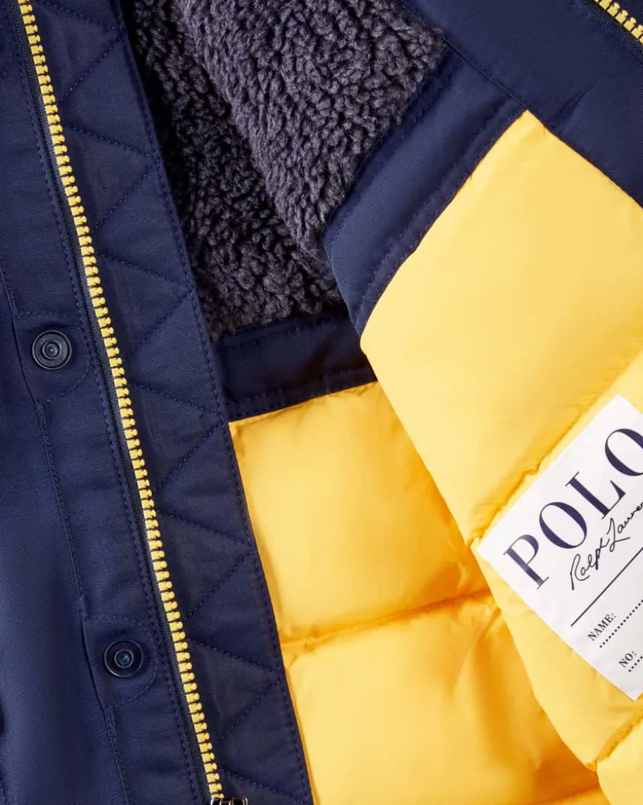 Daunen-Parka für Jungen von Polo Ralph Lauren in Navy. Das Modell überzeugt dankder sportiven Aufmachung, während der abnehmbare Fake-Fur-Kragen besondereAkzente setzt, rundet die wärmende Daunen-Feder-Füllung den Gesamtlook gekonntab und kreiert einen zeitlosen Begleiter der Ihren Kleinen angenehm warm hält.